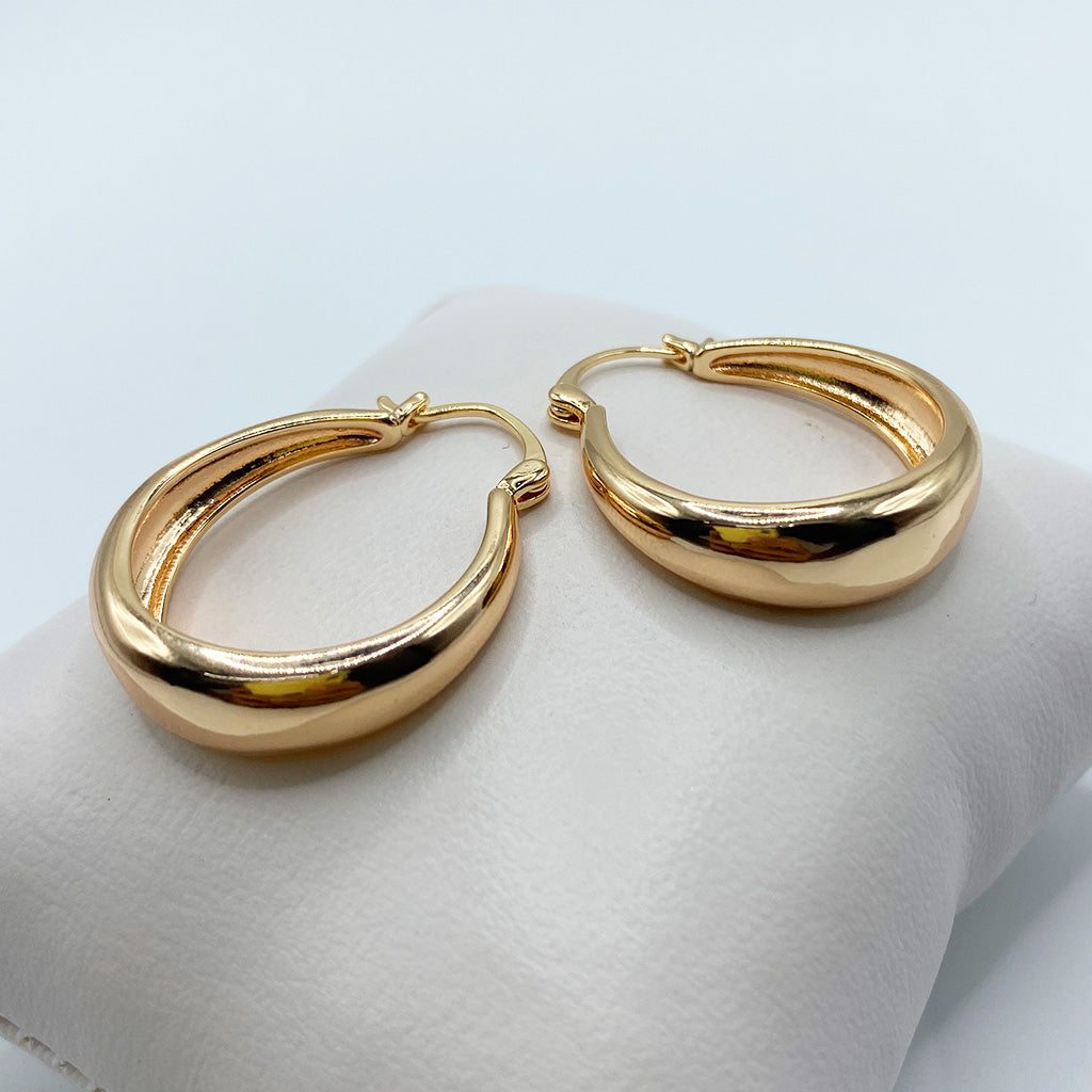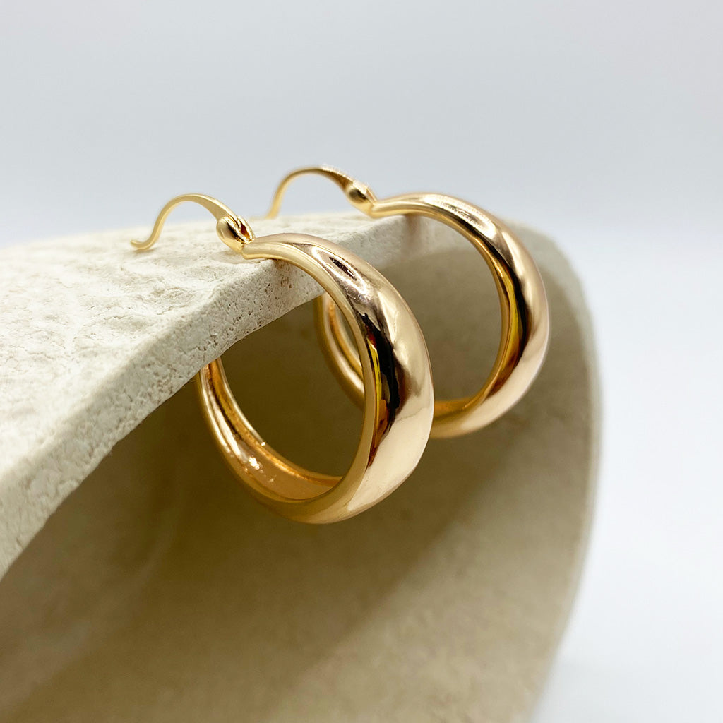 Arracada chapa de oro 18k, 2.5 cm de diámetro, diseño liso.