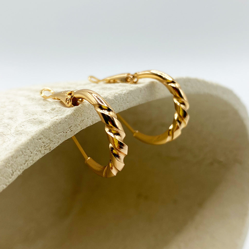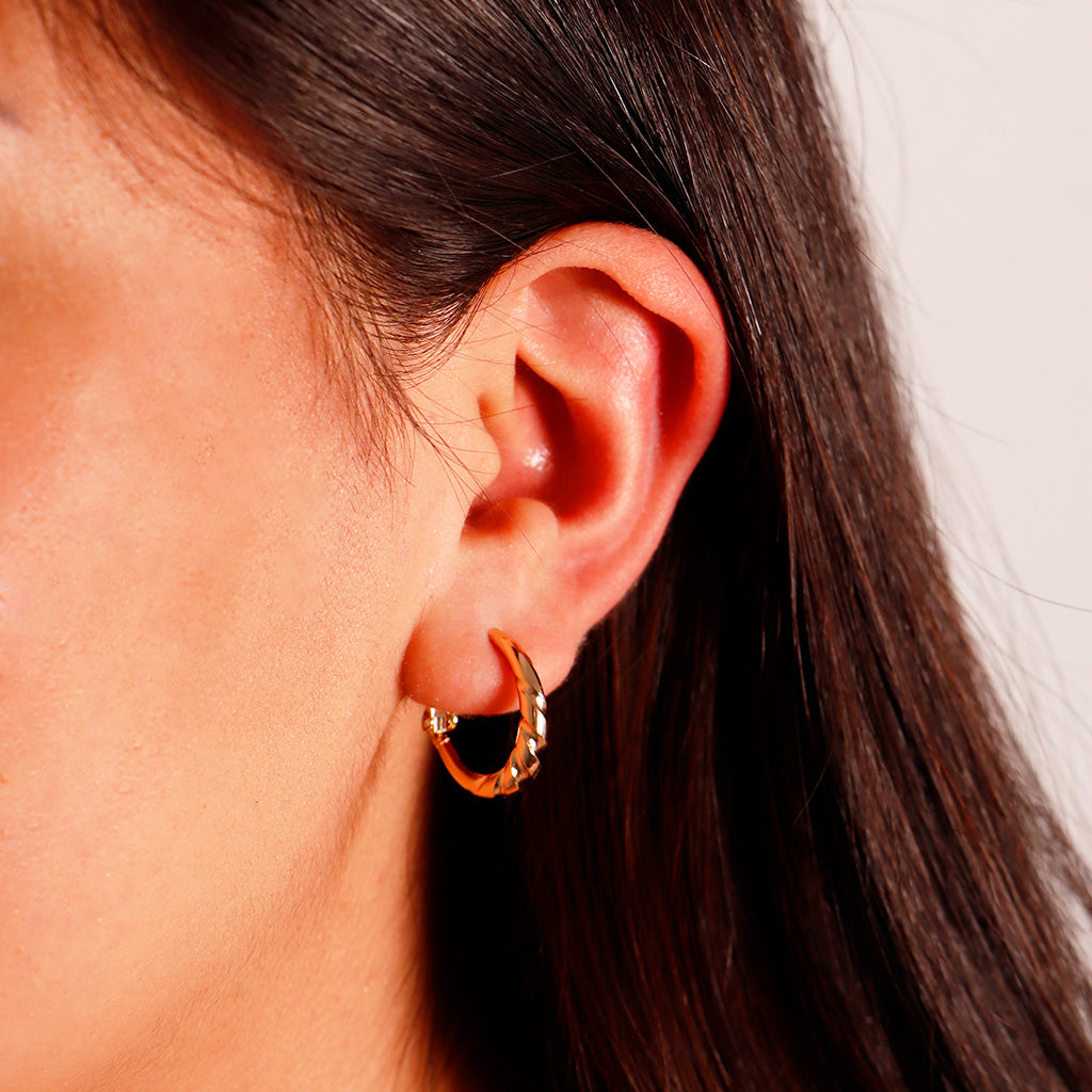 Arracada chapa de oro 18k, 1.5 cm de diámetro, diseño toricido.