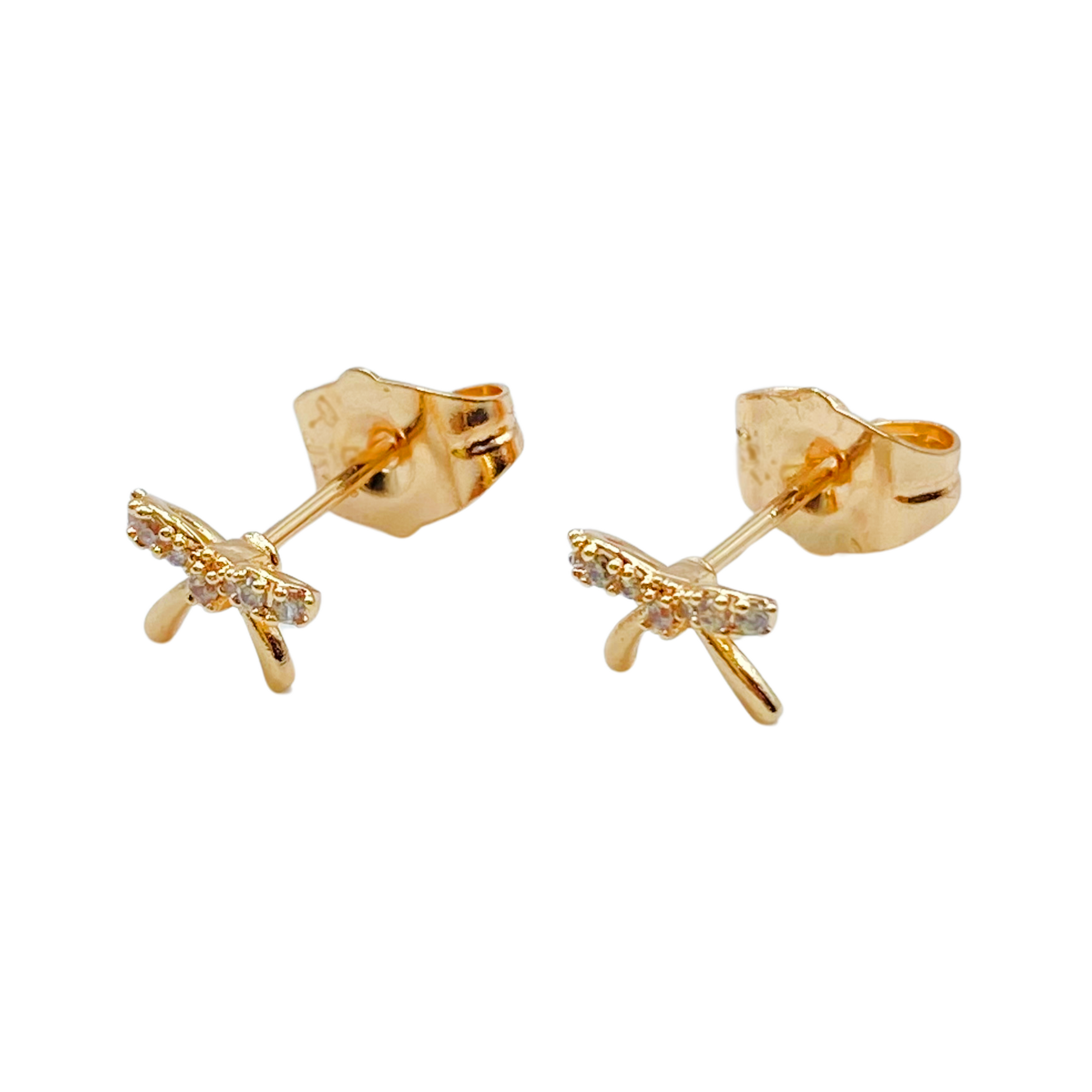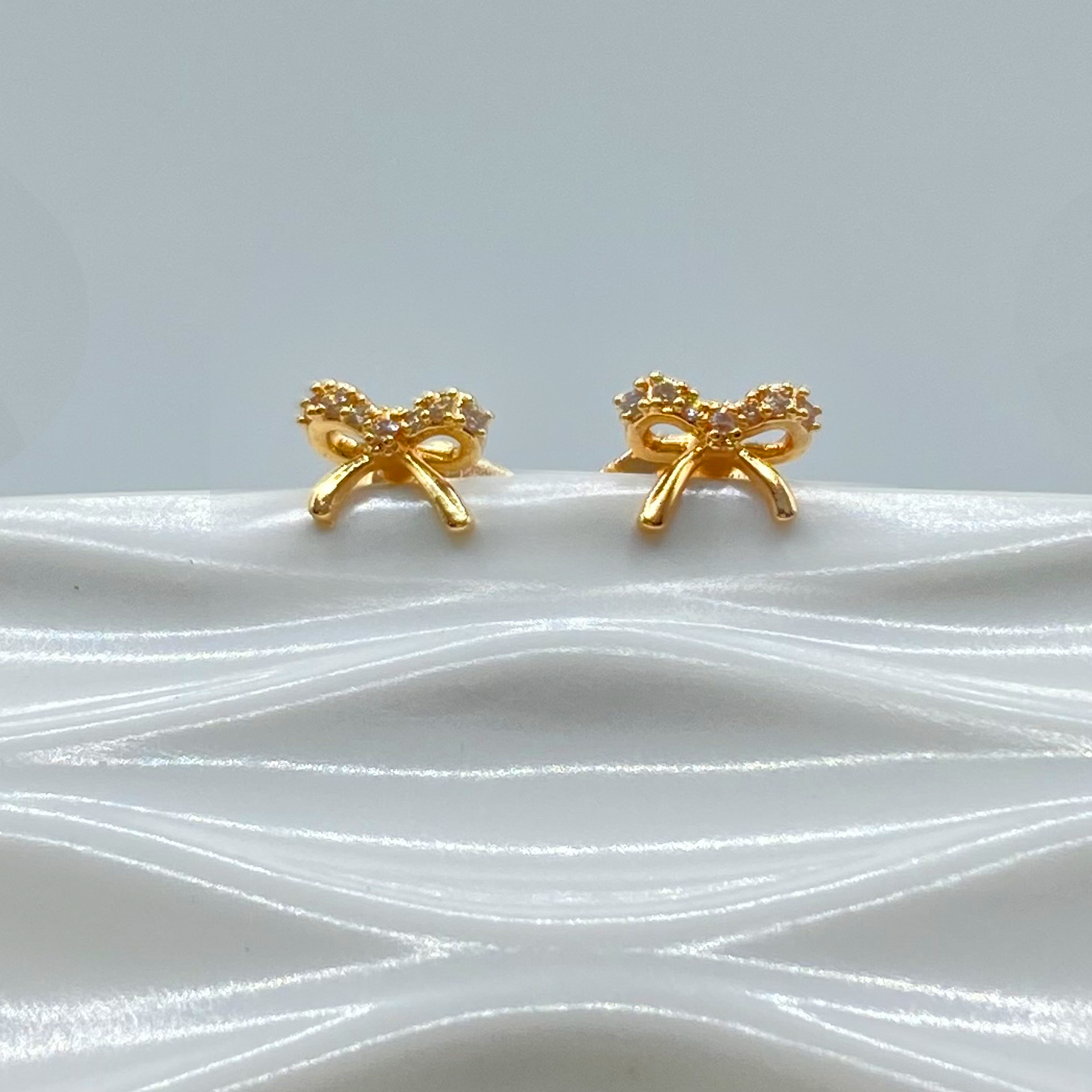 Arete en chapa de oro de 18k en forma de moño con microcirconias.