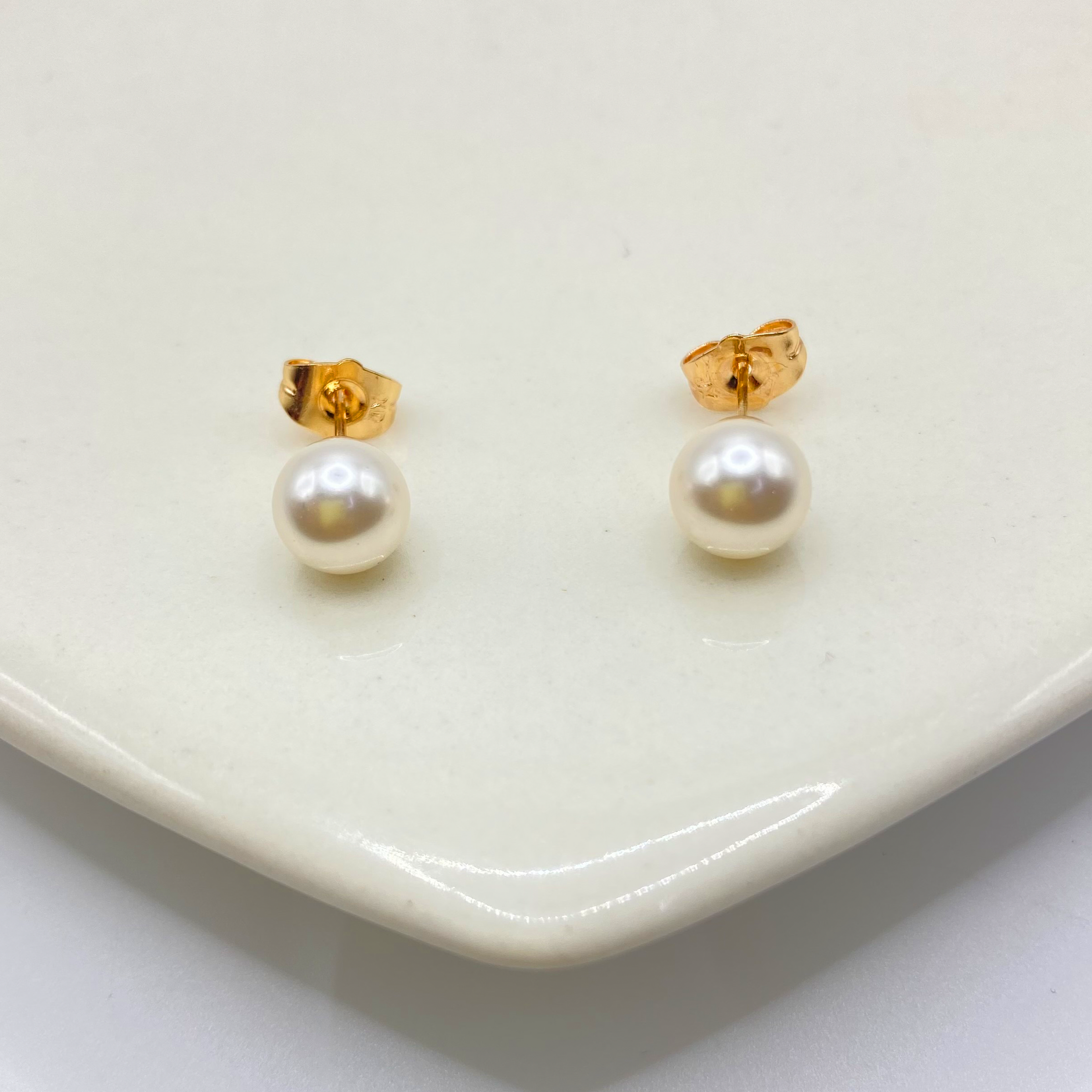 Arete broquel en chapa de oro 18k con una pequeña perla de 1 cm.