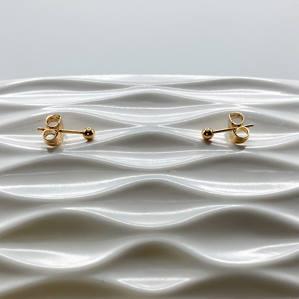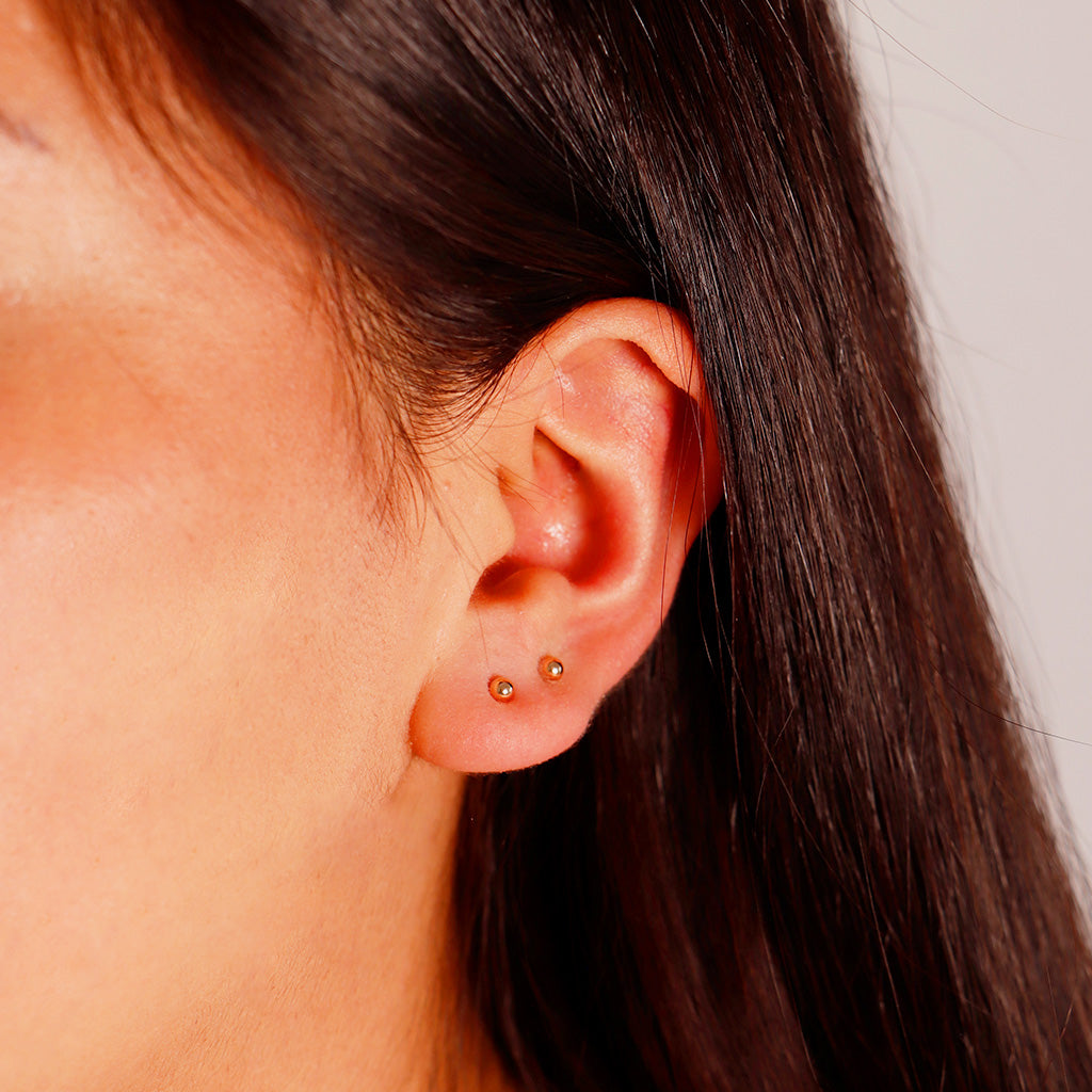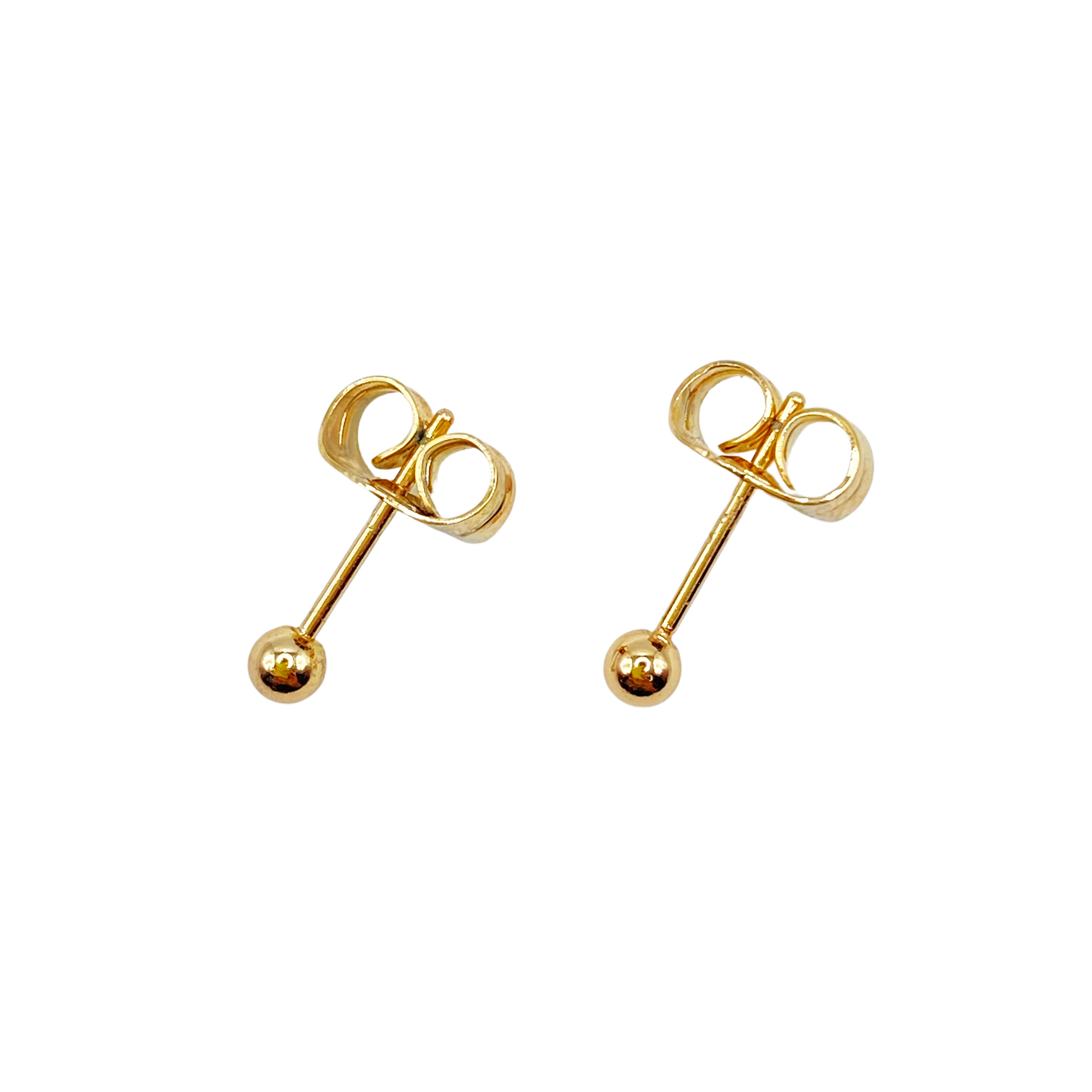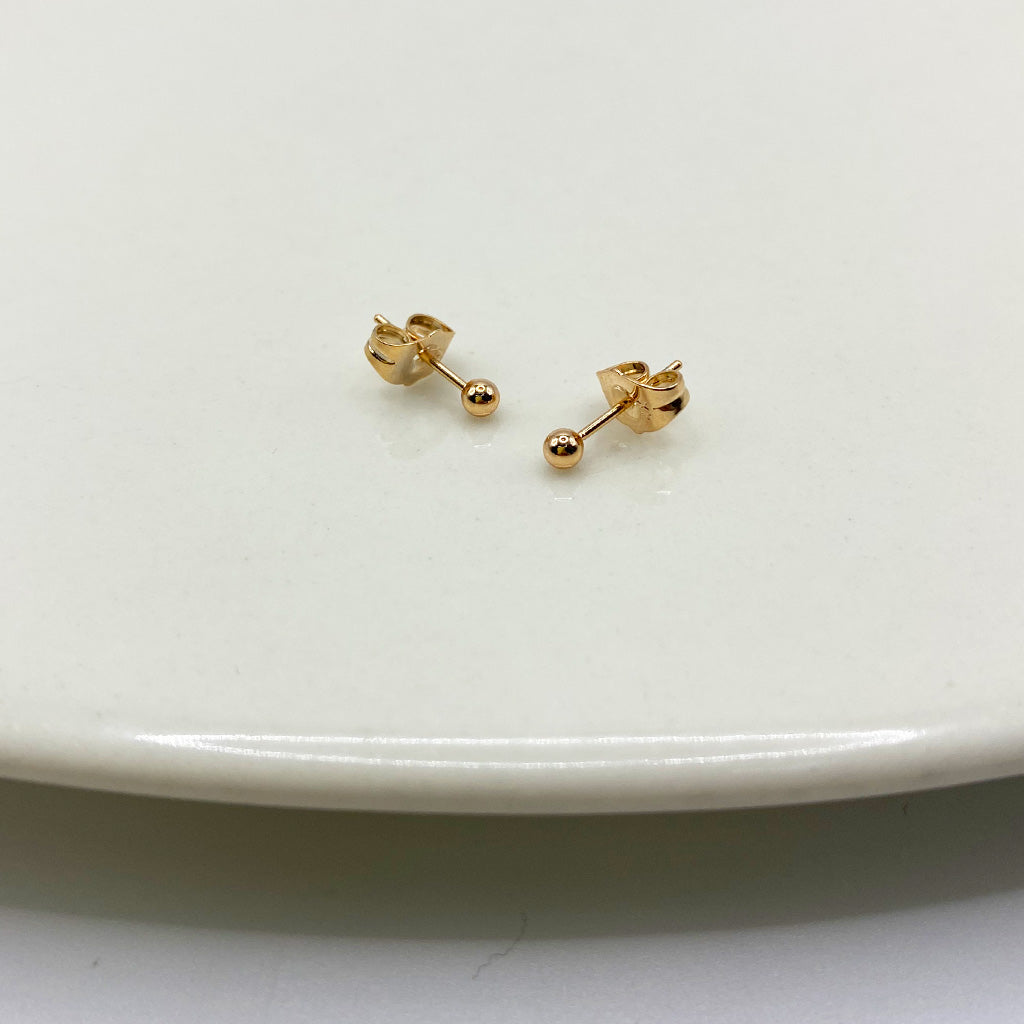 Arete broquel, chapa de oro 18k con pequeña perla dorada lisa.