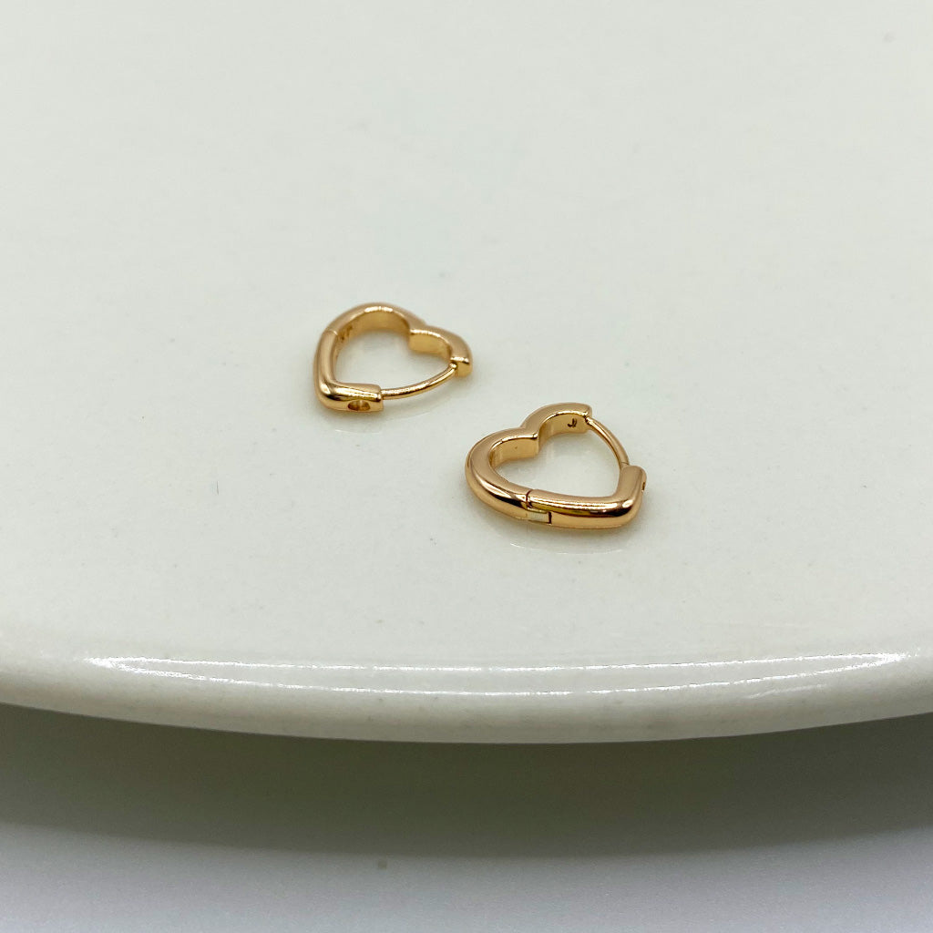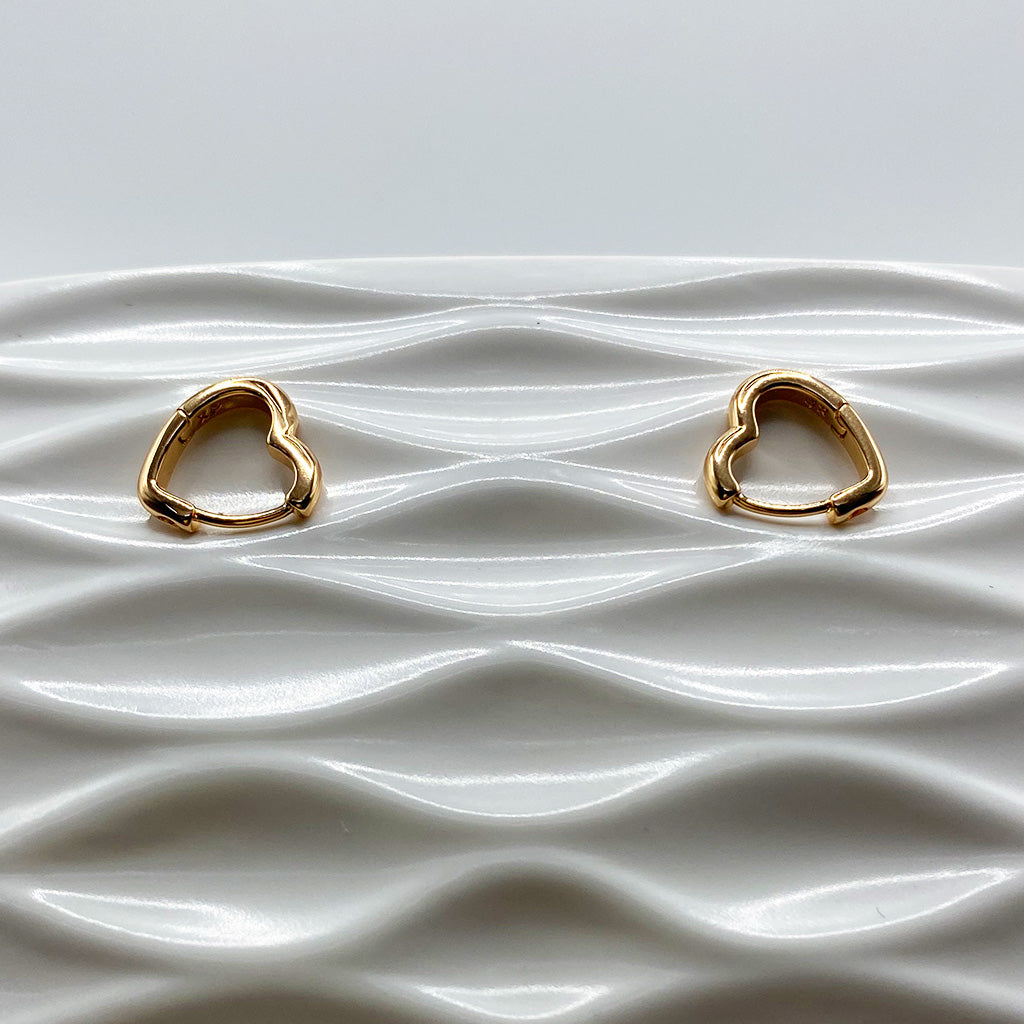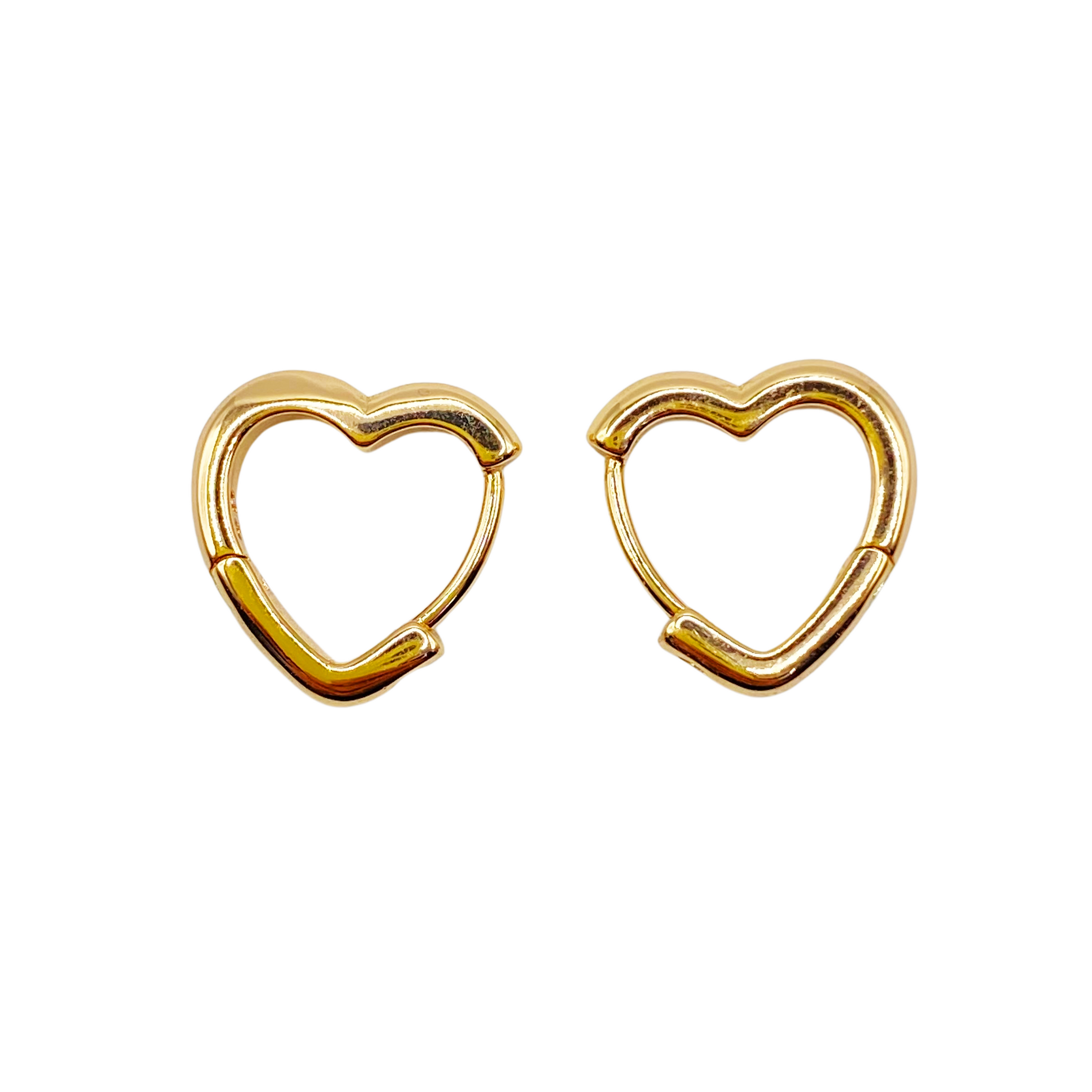 Huggie en chapa de oro 18k con diseño de corazón, totalmente lisa.