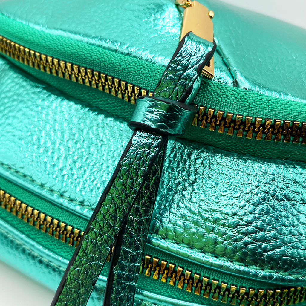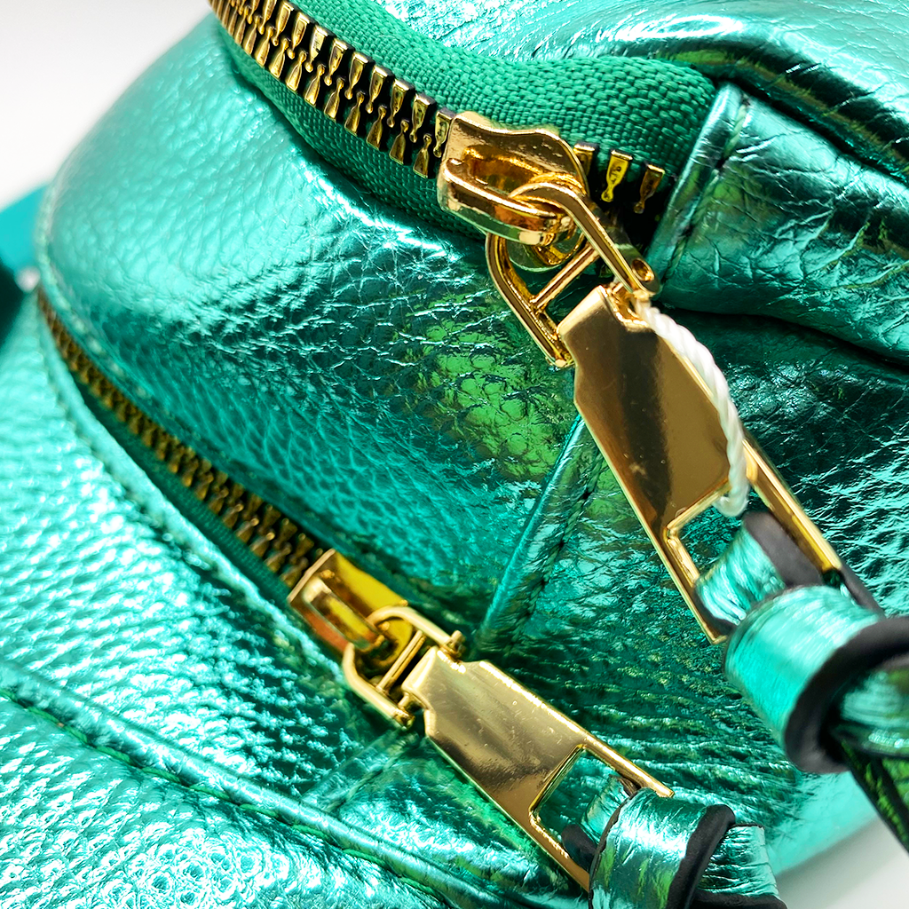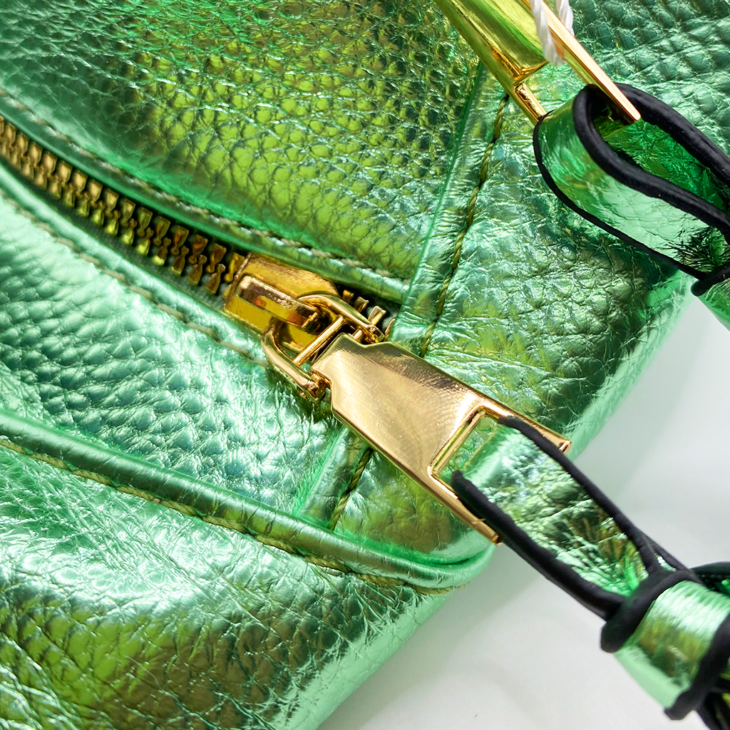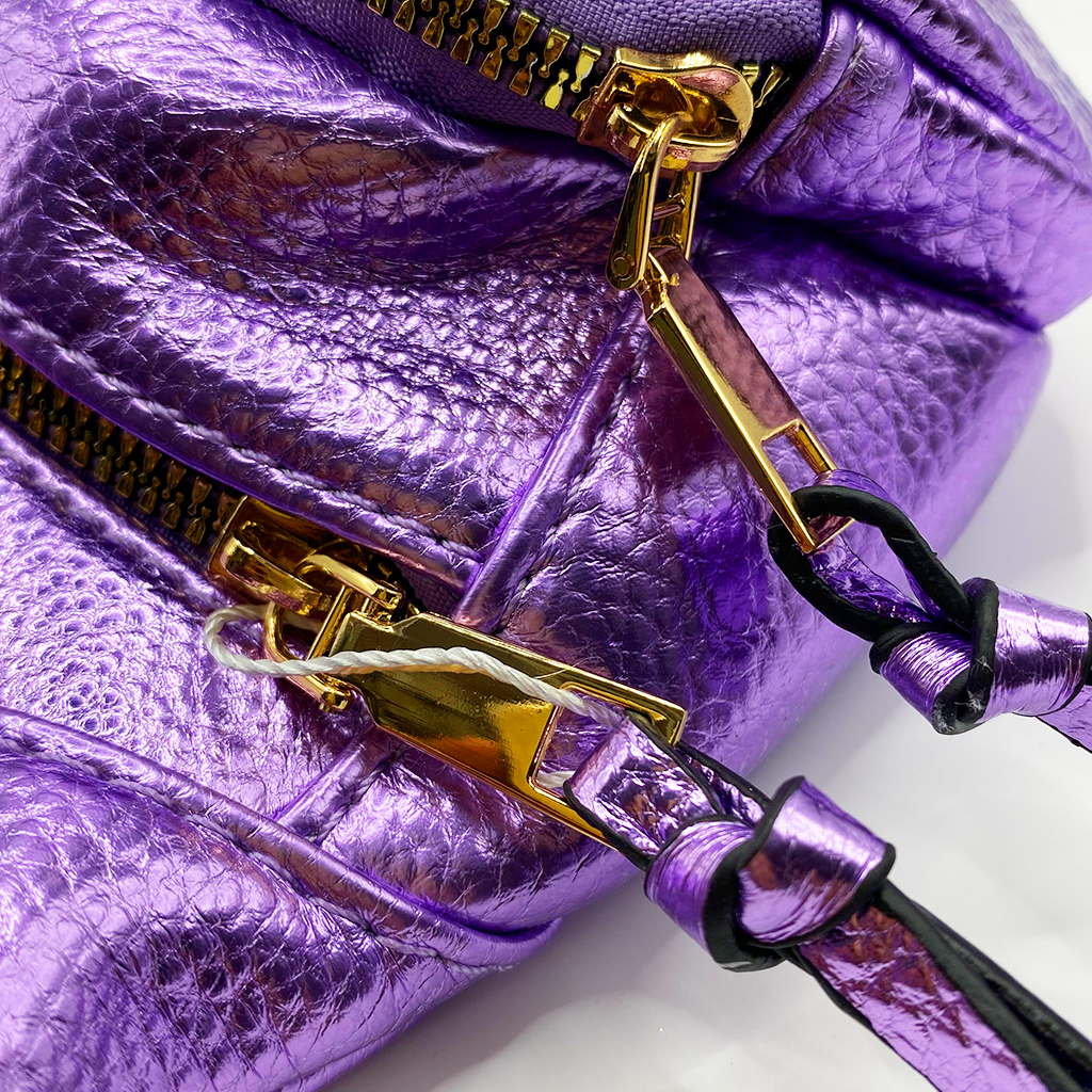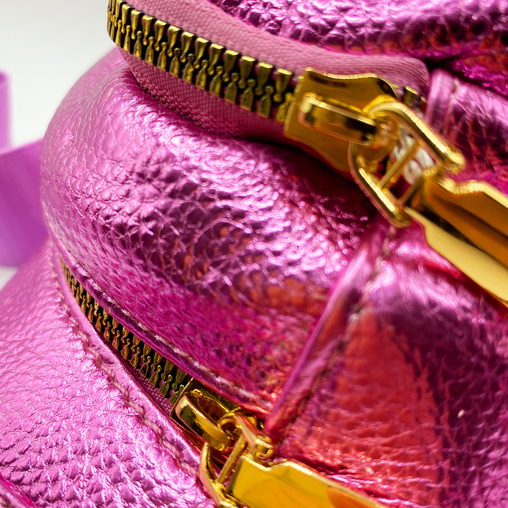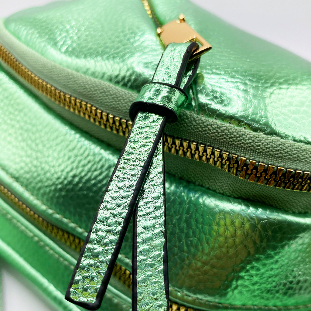 Cangurera en tonos metálicos. Este modelo está confeccionado con materiales de la más alta calidad y trae consigo una correa ajustable para mayor comodidad, ideal para tus salidas más casuales. Dimensiones: 20 cm de alto x 35 cm de ancho.