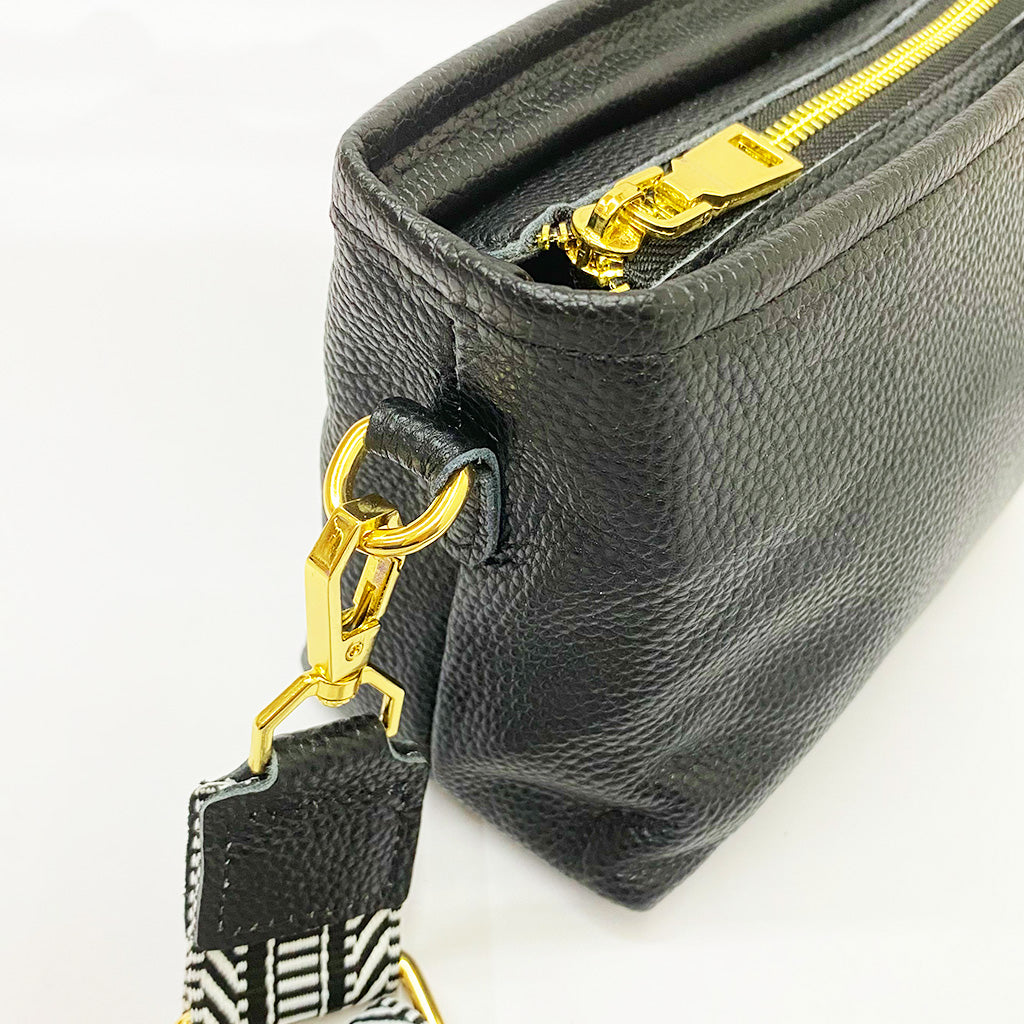 Bolso bandolera con correas intercambiables y detalles dorados.
