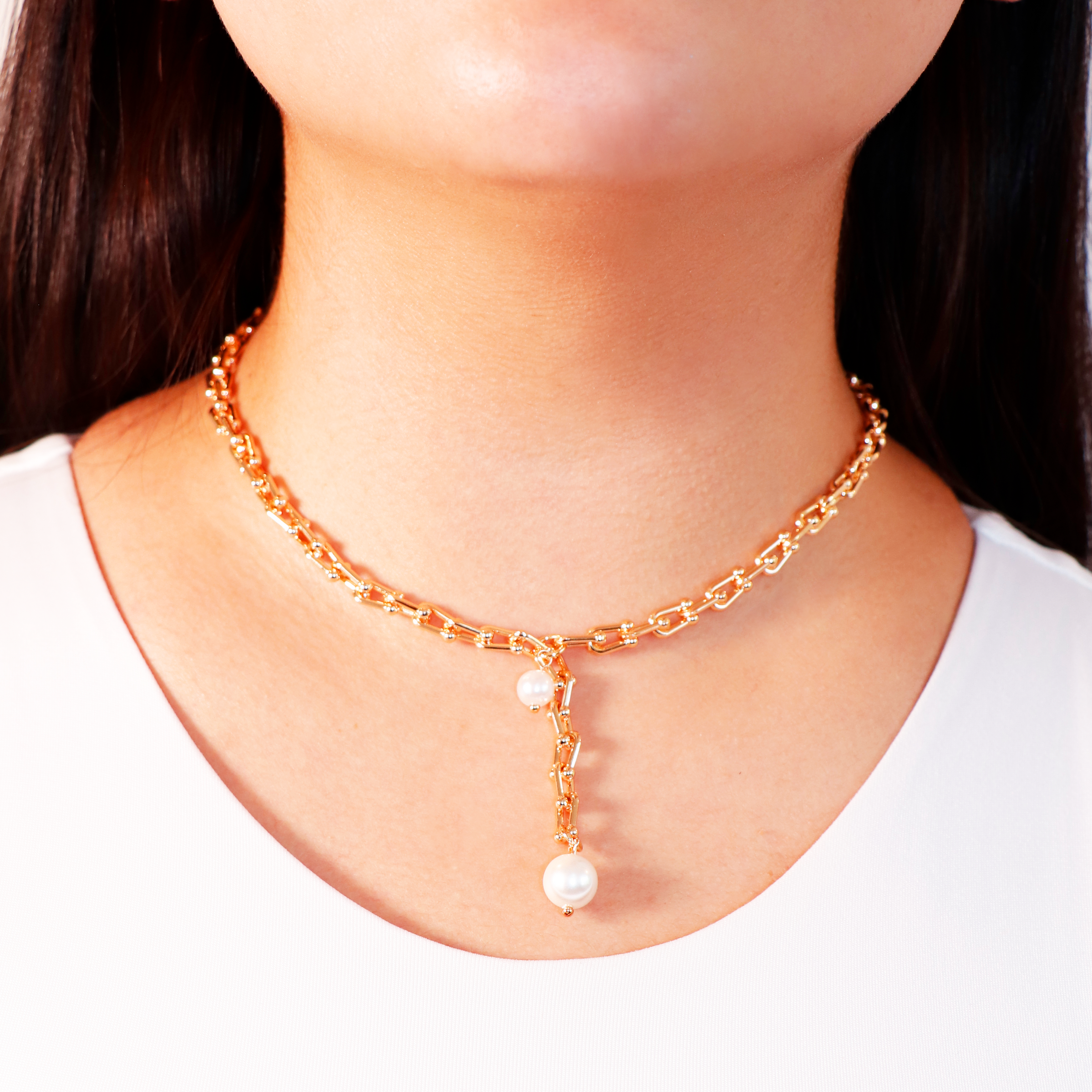 Gargantilla de 50 cm en chapa de oro de 18 kilates con tejido Tiffany.