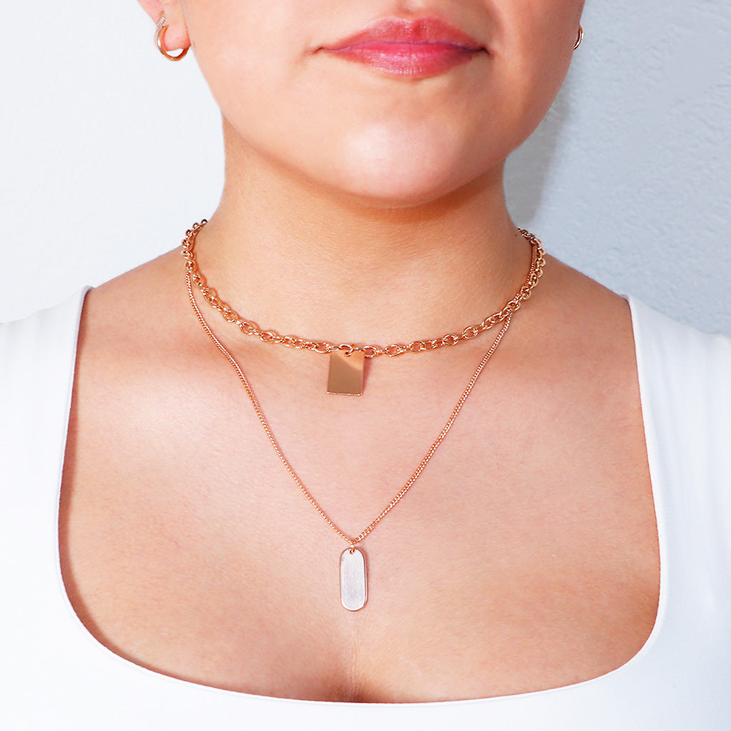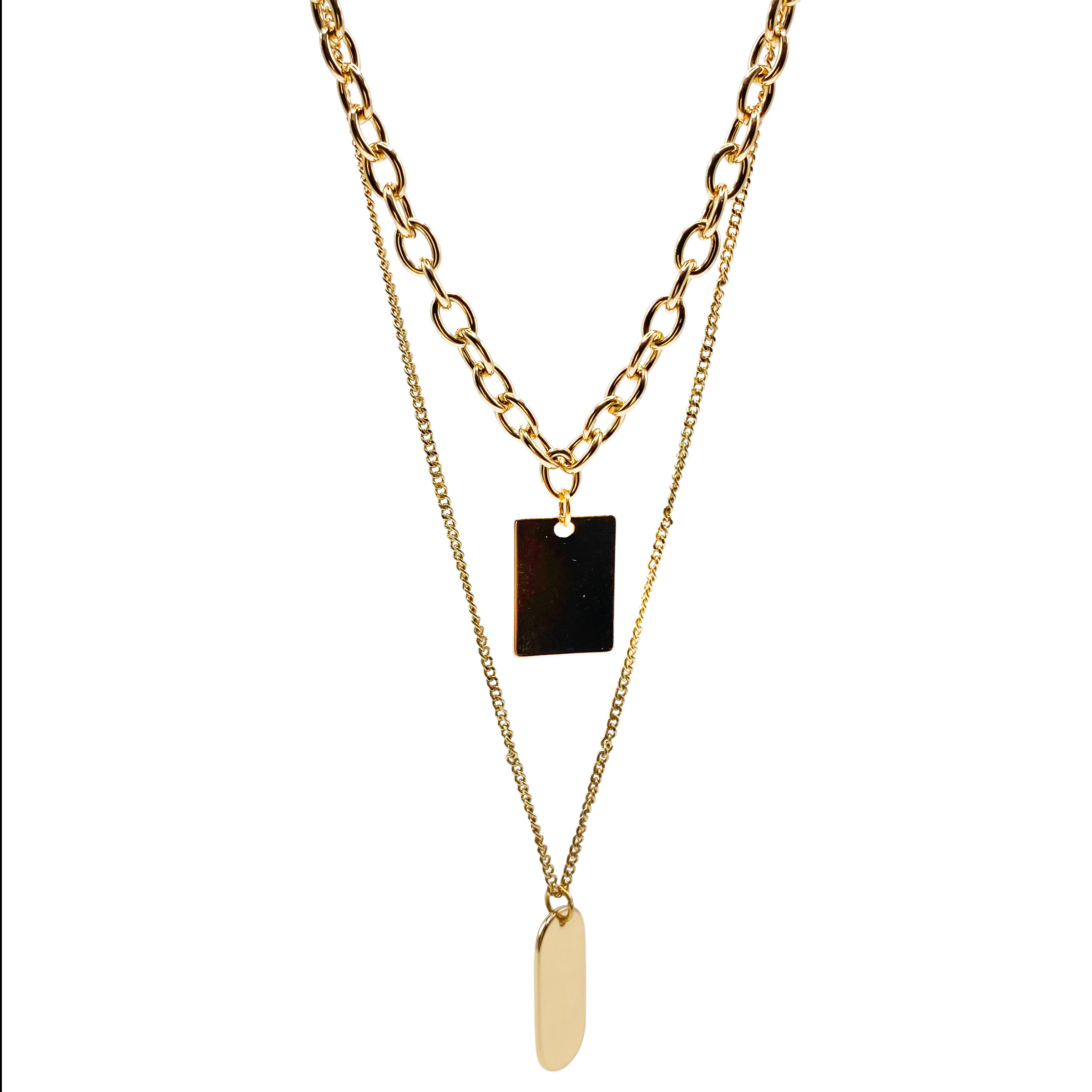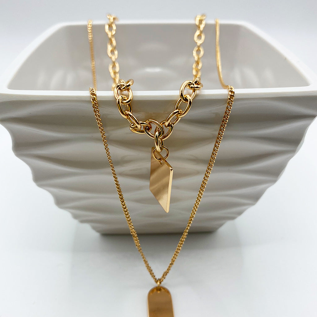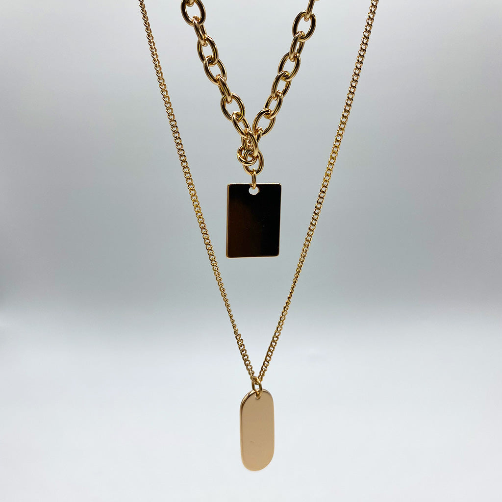 Gargantilla en chapa de oro de 18k, cadenas en 3 bloques (35 cm, 40 cm y 45 cm) y extensión de 5 cm.