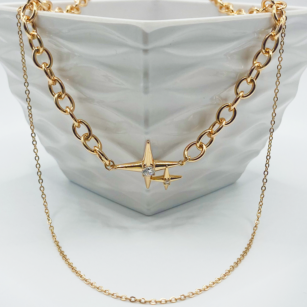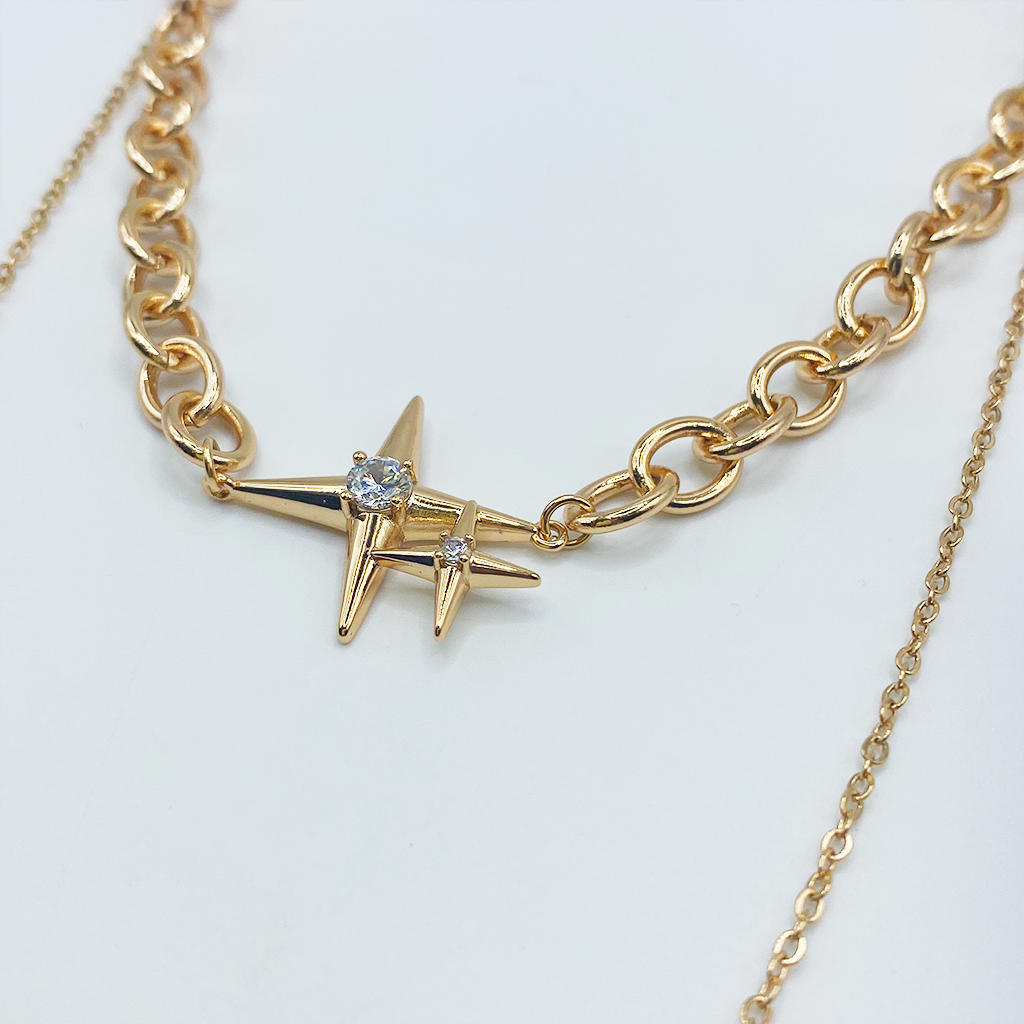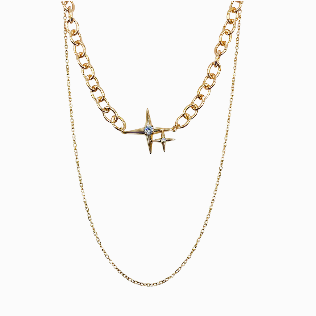 Gargantilla bañada en oro de 18k de dos cadenas con colgante de estrella.