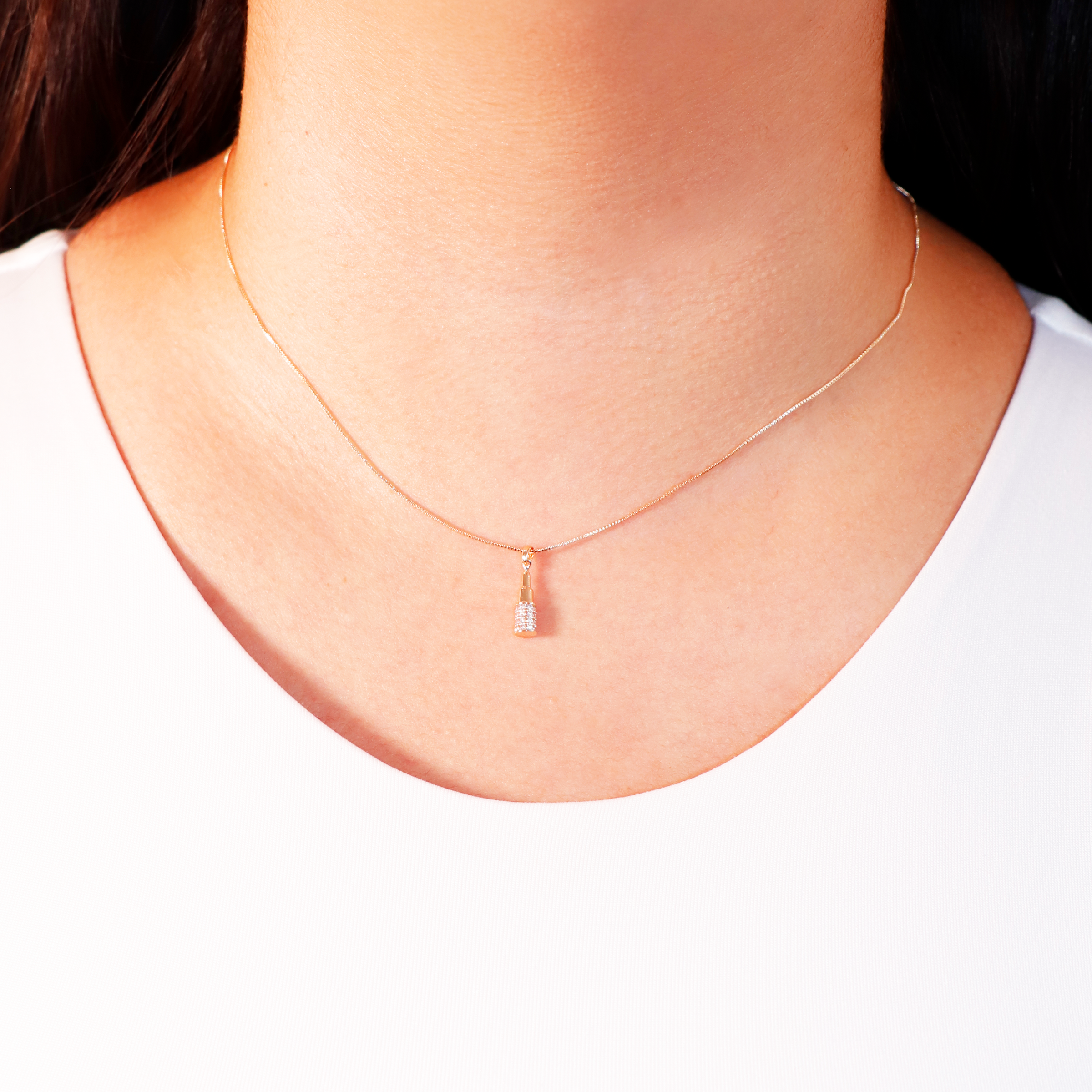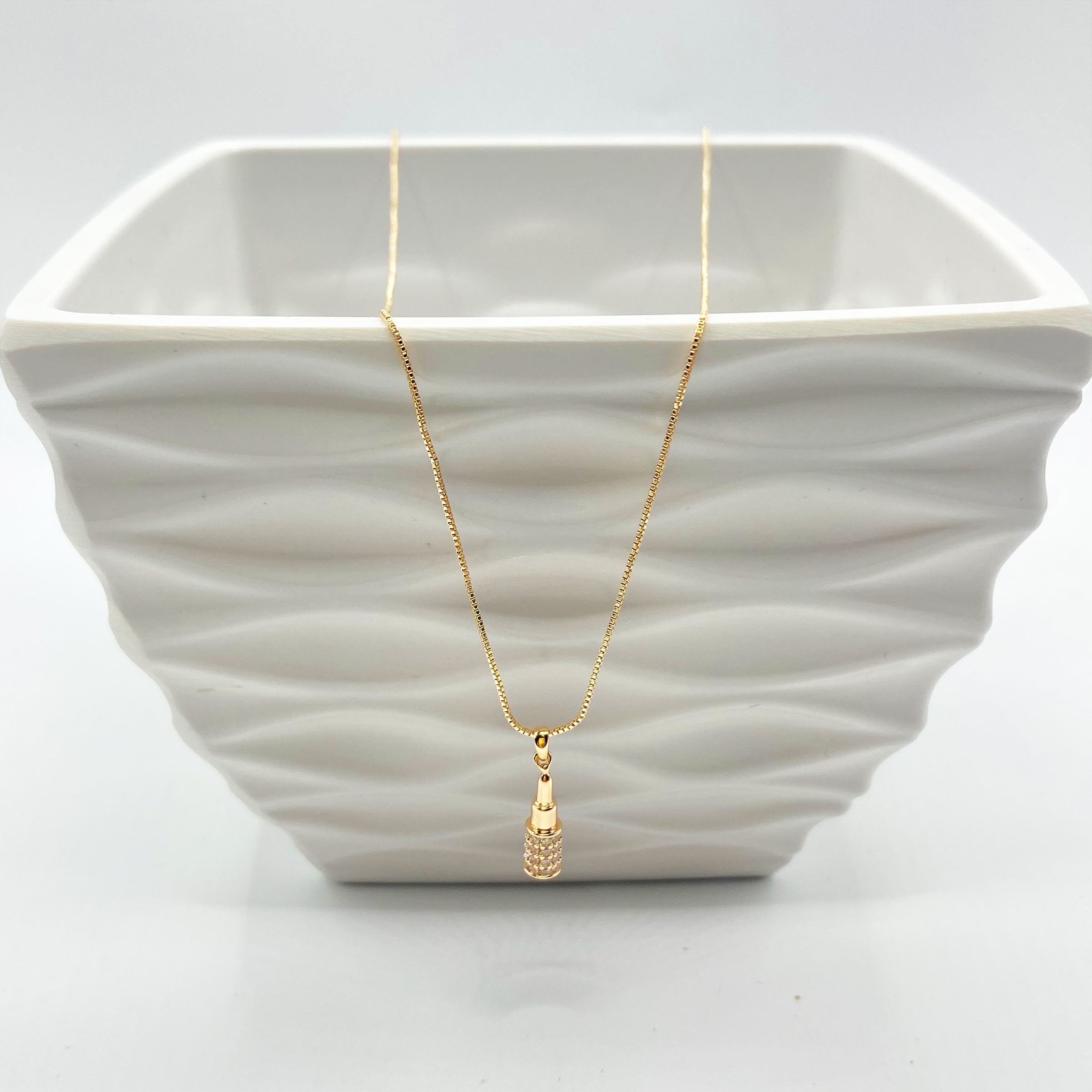 Gargantilla de 45 cm, bañada en oro de 18 kilates y con un dije de microfono y circonias.