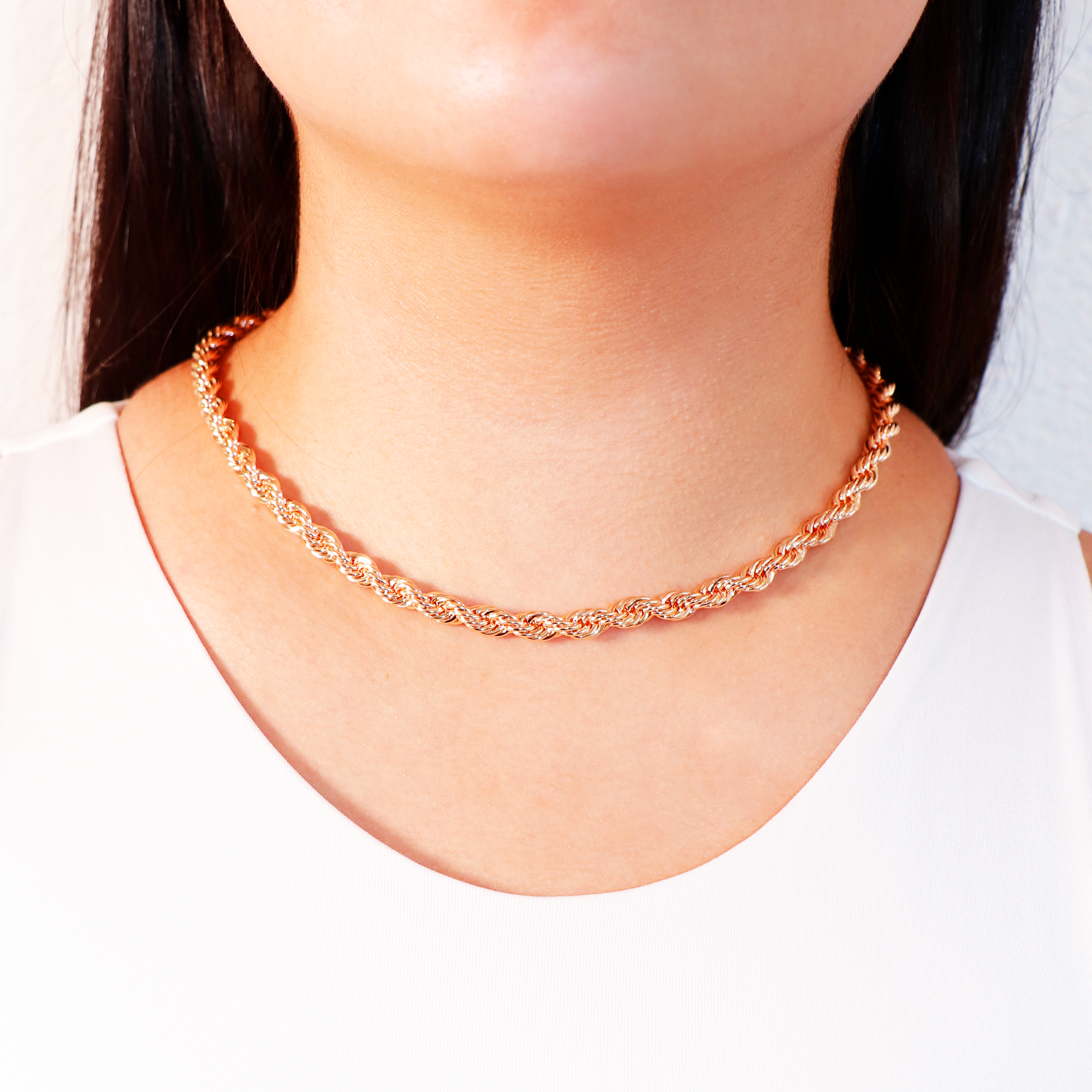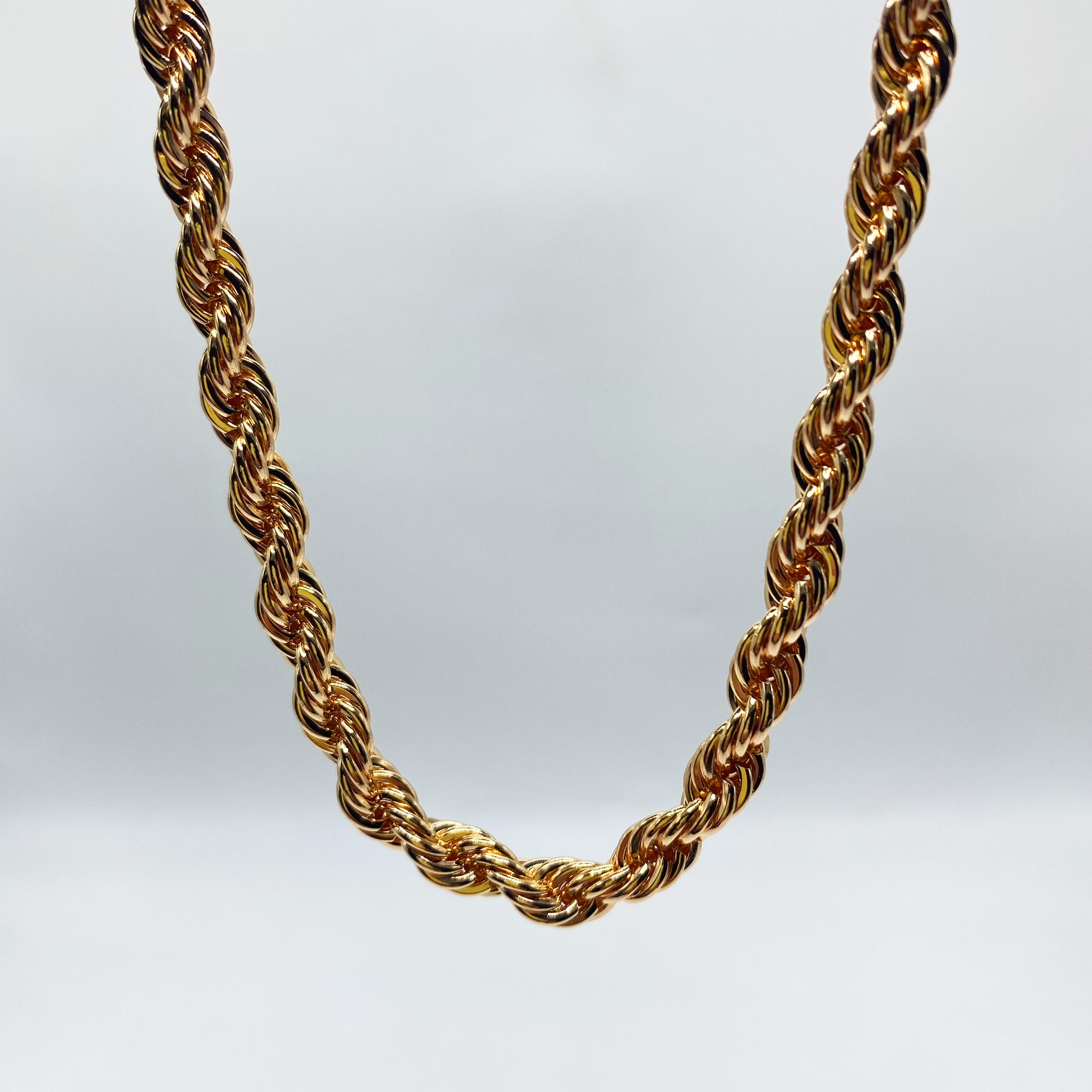 Cadena tejido torsal de 45 cm y 7 mm de grosor chapada en oro de 18 kilates.