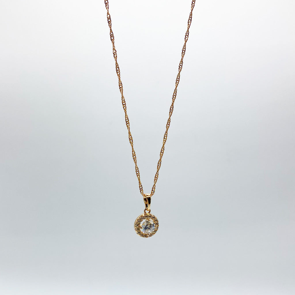 Gargantilla en chapa de oro 18k de 45 cm con pequeño dije de zirconias.