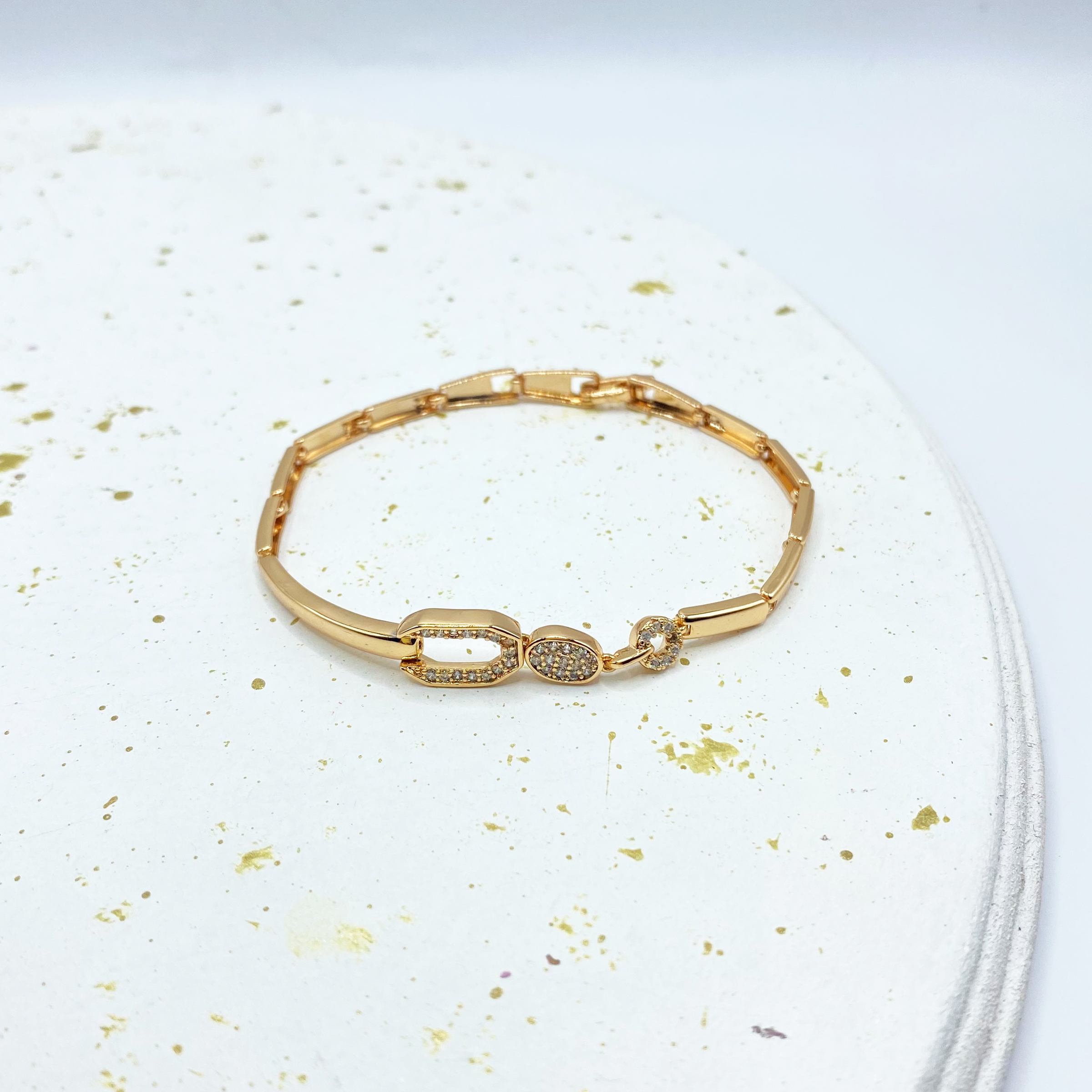 Pulsera en chapa de oro de 18 kilates con placas que simulan un cinturón.