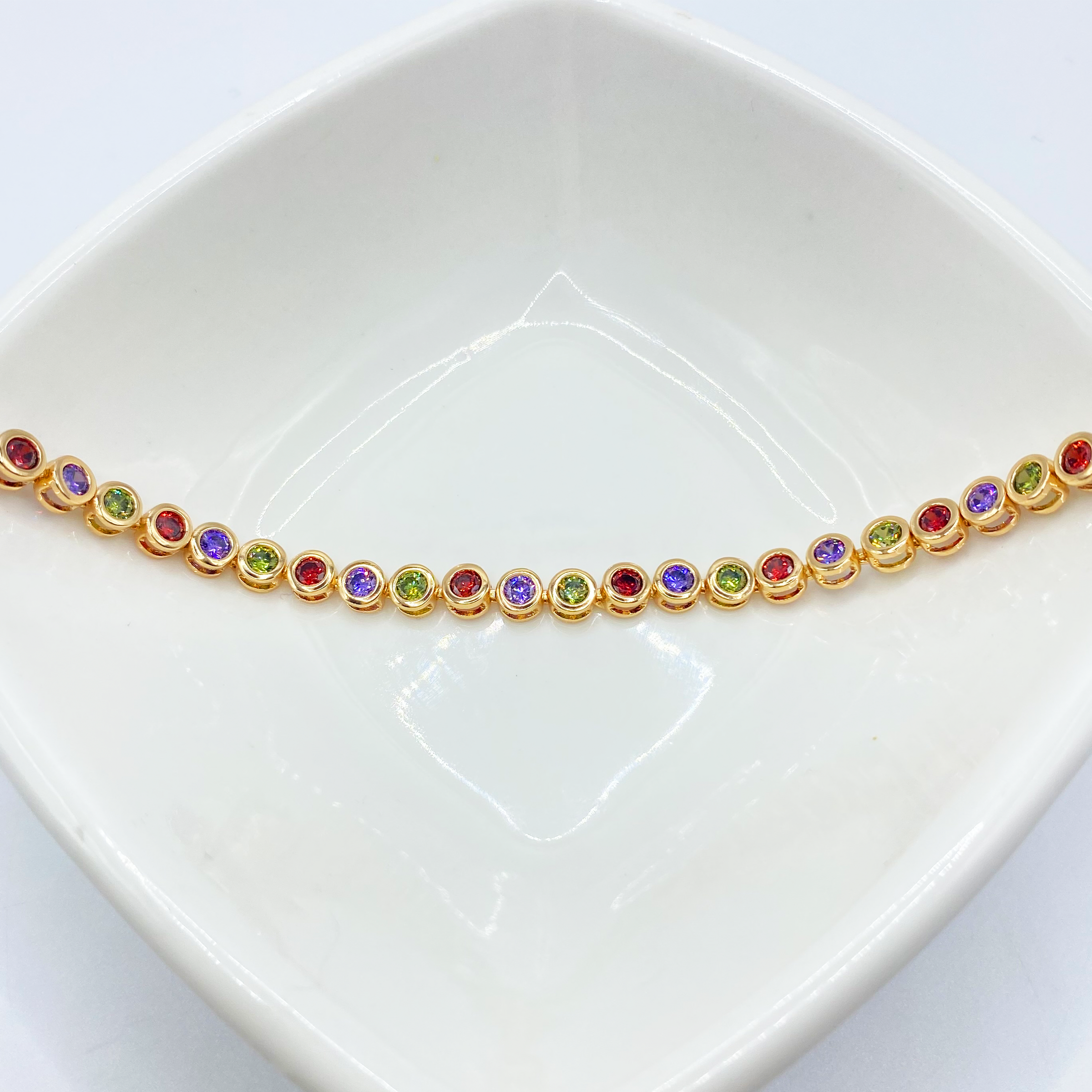Pulsera en chapa de oro de 18 k con circonias redondas.