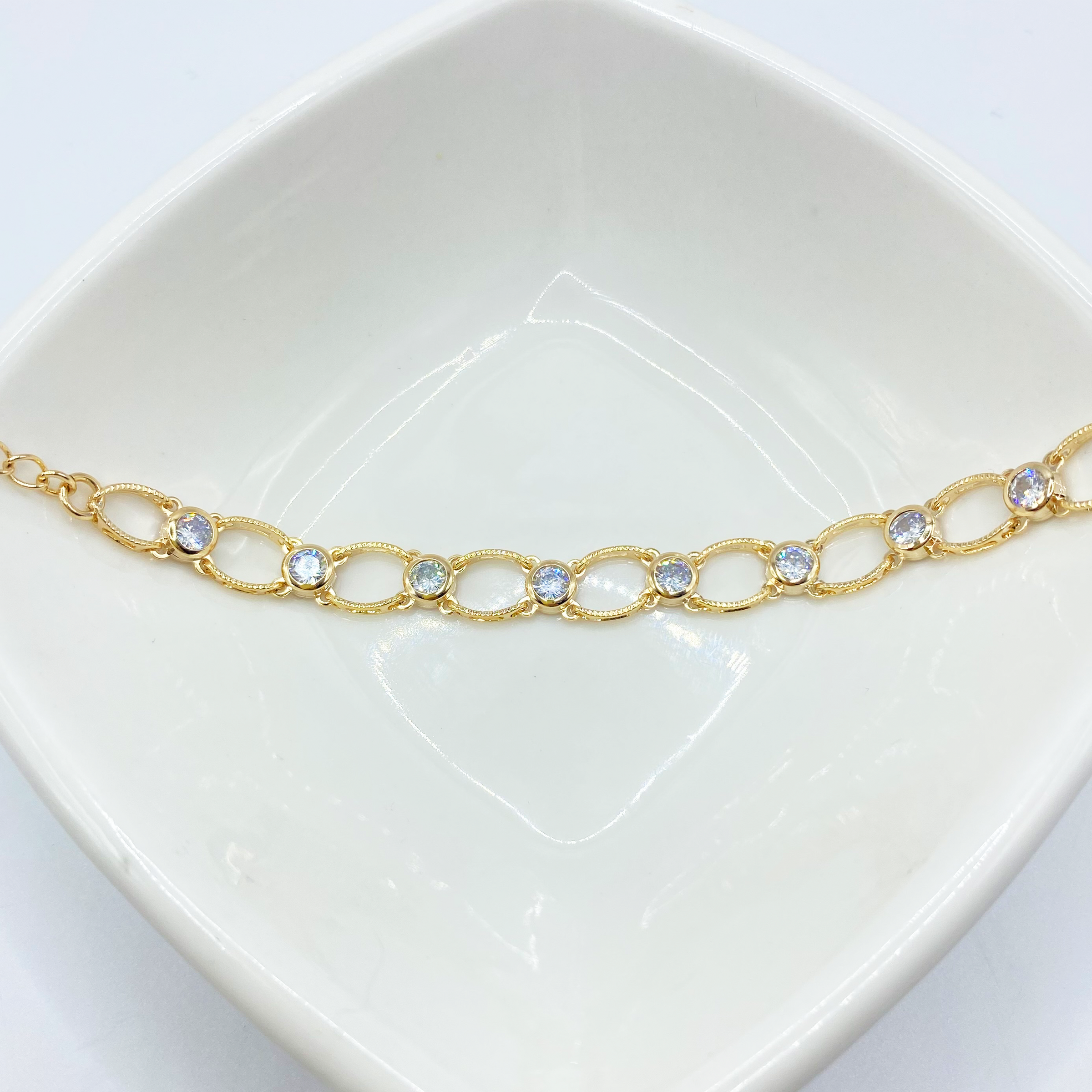 Pulsera bañada en oro de 18 kilates con tejido cruzado y circonias.