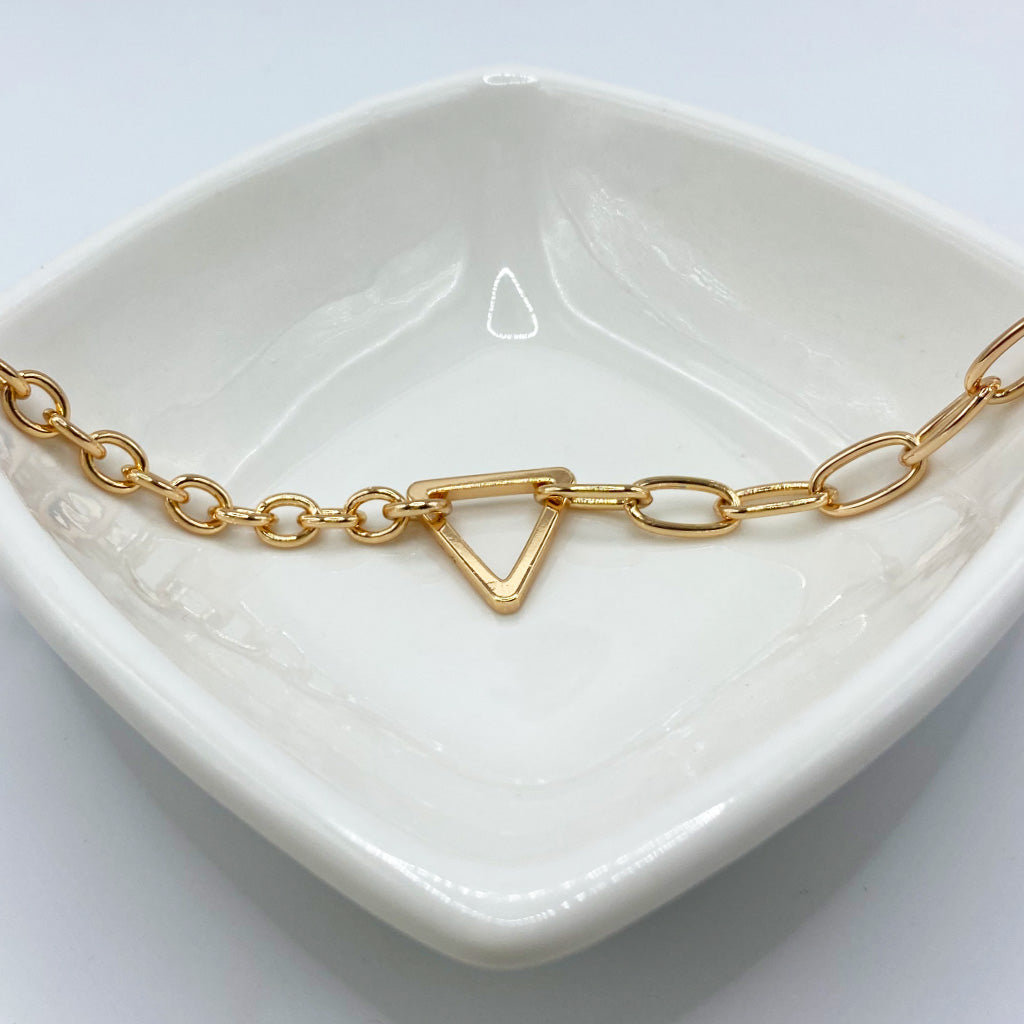 Pulsera en chapa de oro 18k, lisa con diseño geométrico, 17 cm de largo y con extensión.