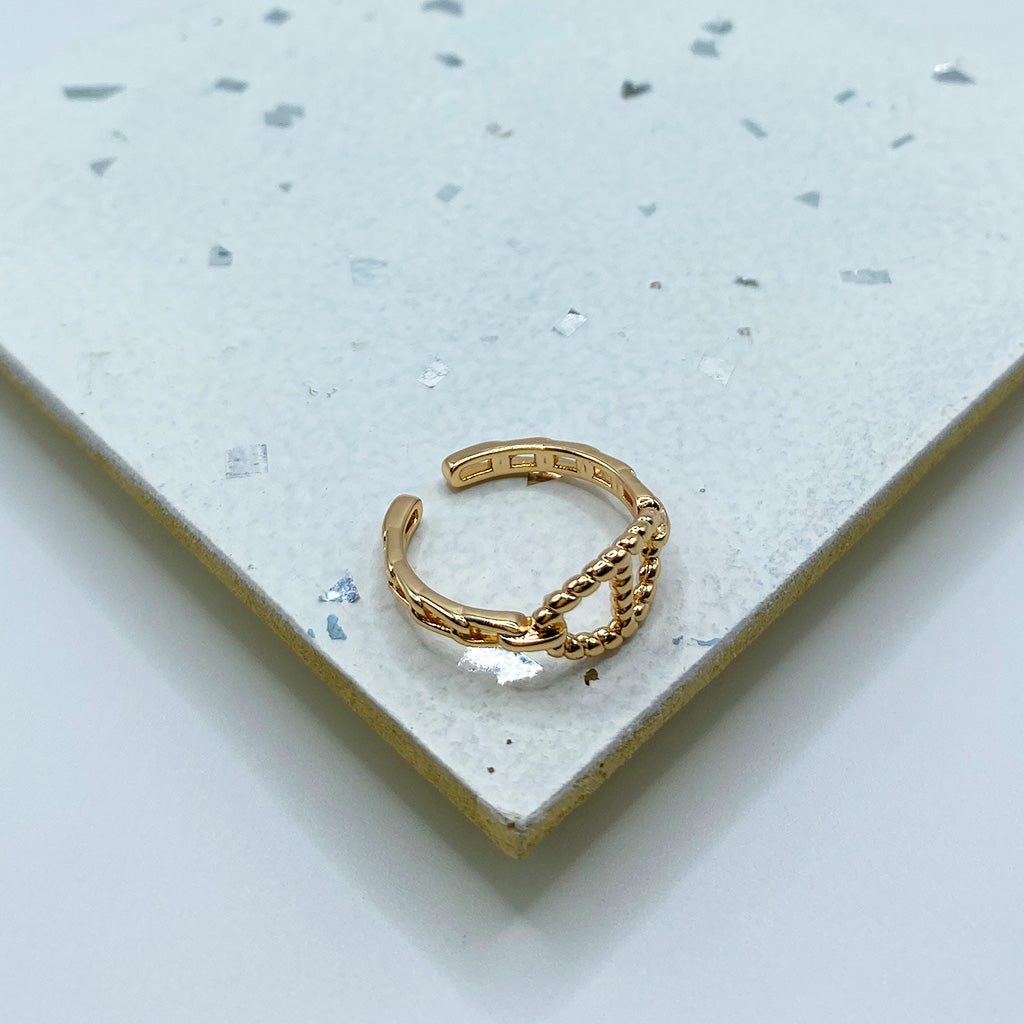 Anillo en chapa de oro 18k, liso y con diseño de eslabones.