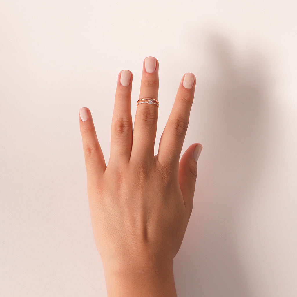 Anillo doble hilo en chapa de oro 18k, con circonita.