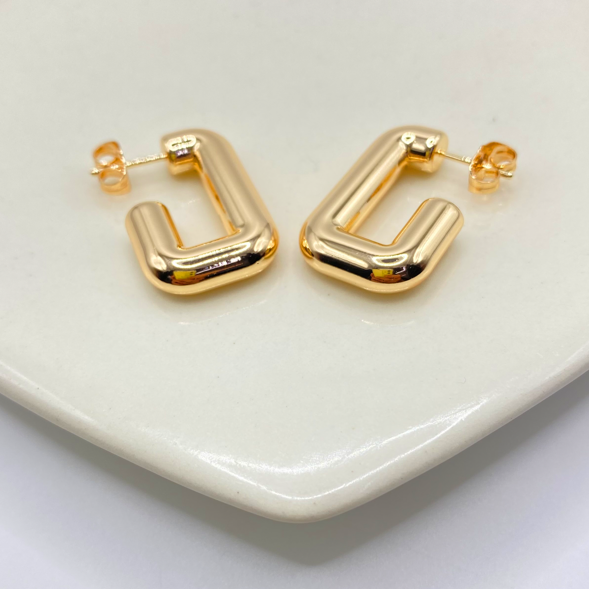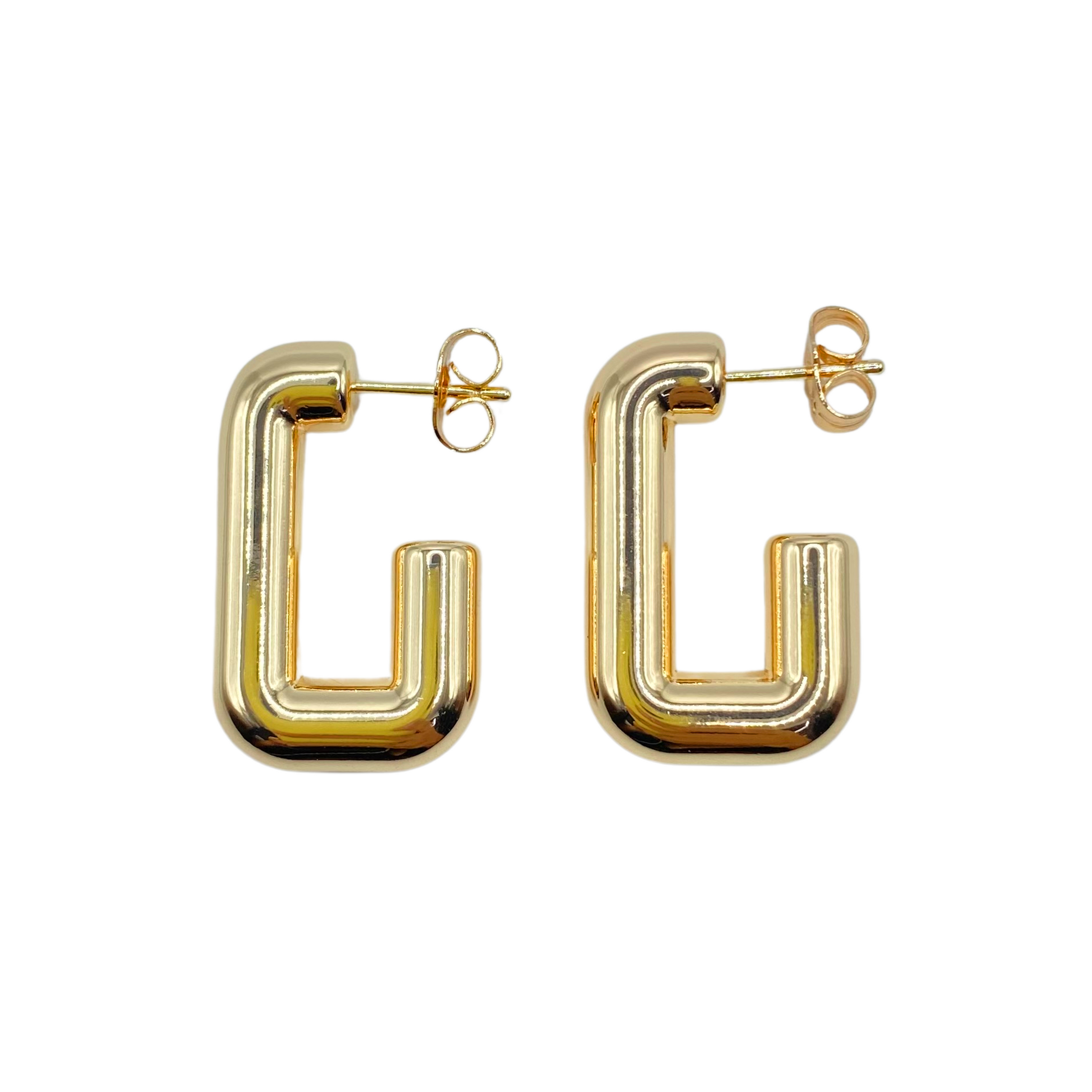 Arracada en chapa de oro 18k, diseño chunky semi cuadrado.