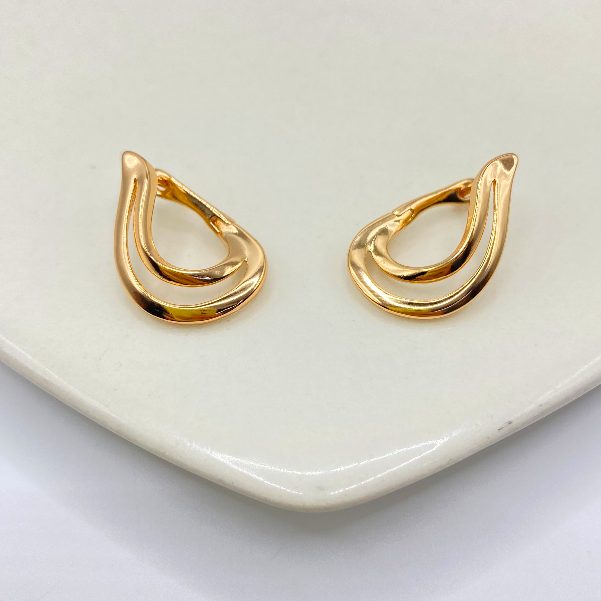 Arracas en chapa de oro de 18k, diseño de semejante a una gota, diametro de 2.5 cm.
