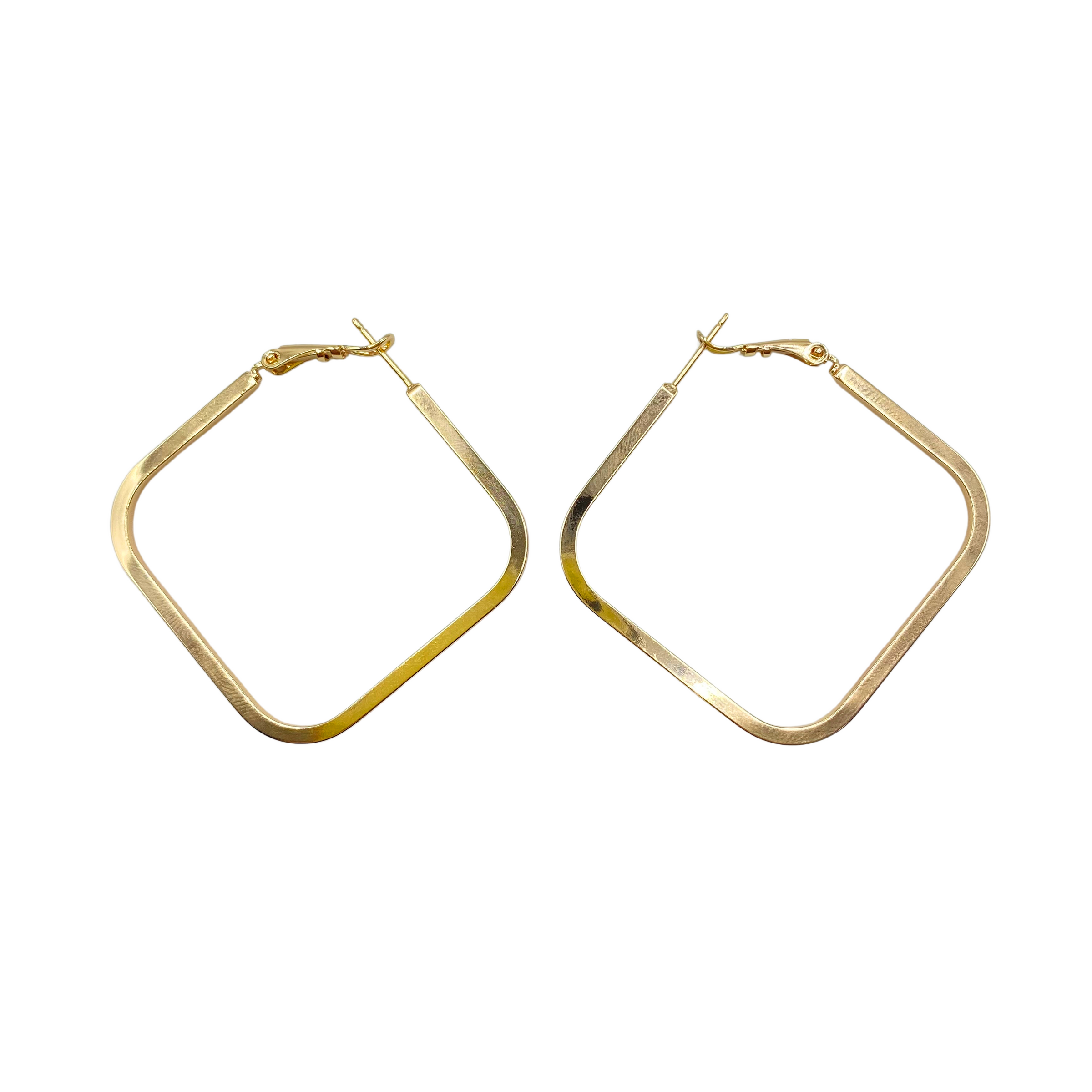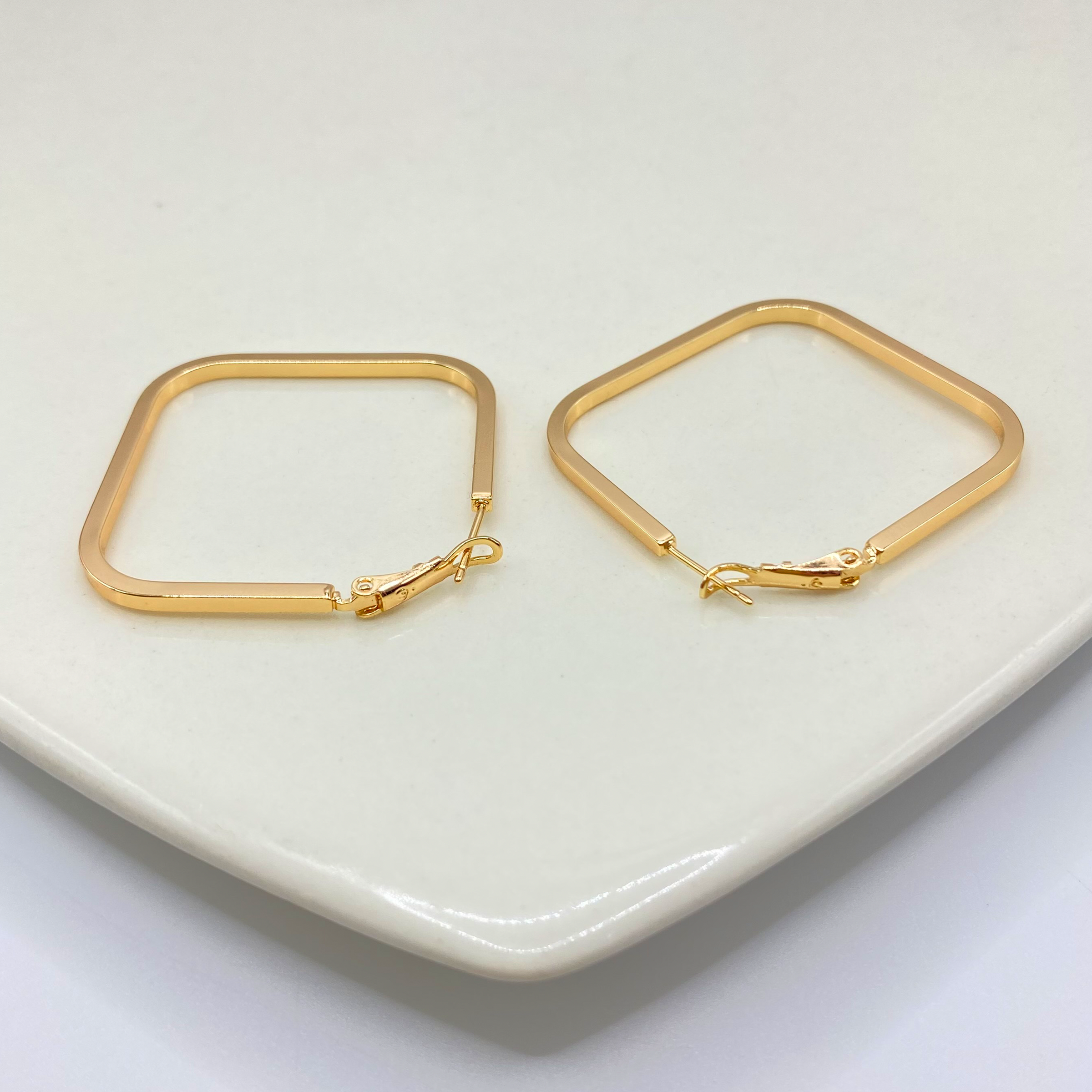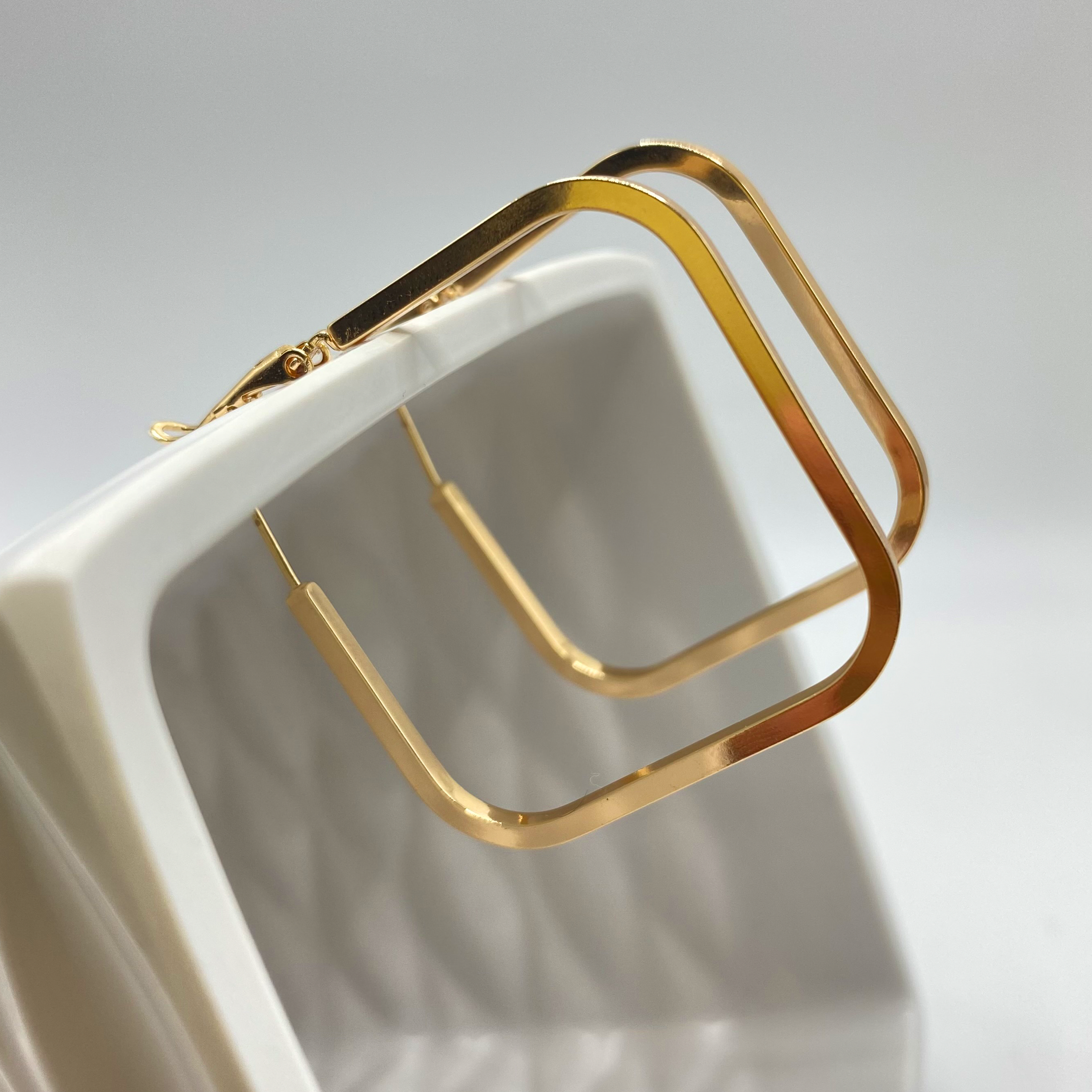 Arracada cuadrada y lisa, bañada en oro de 18k con un diametro de 4 cm.