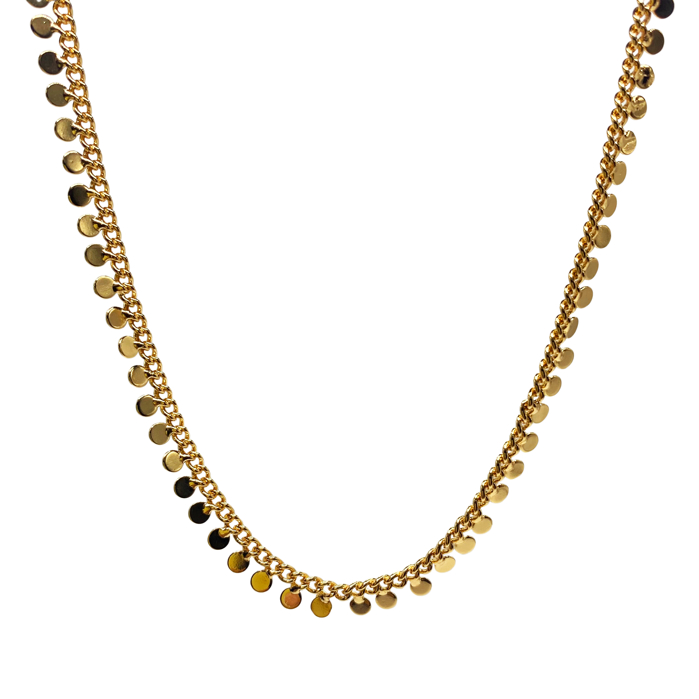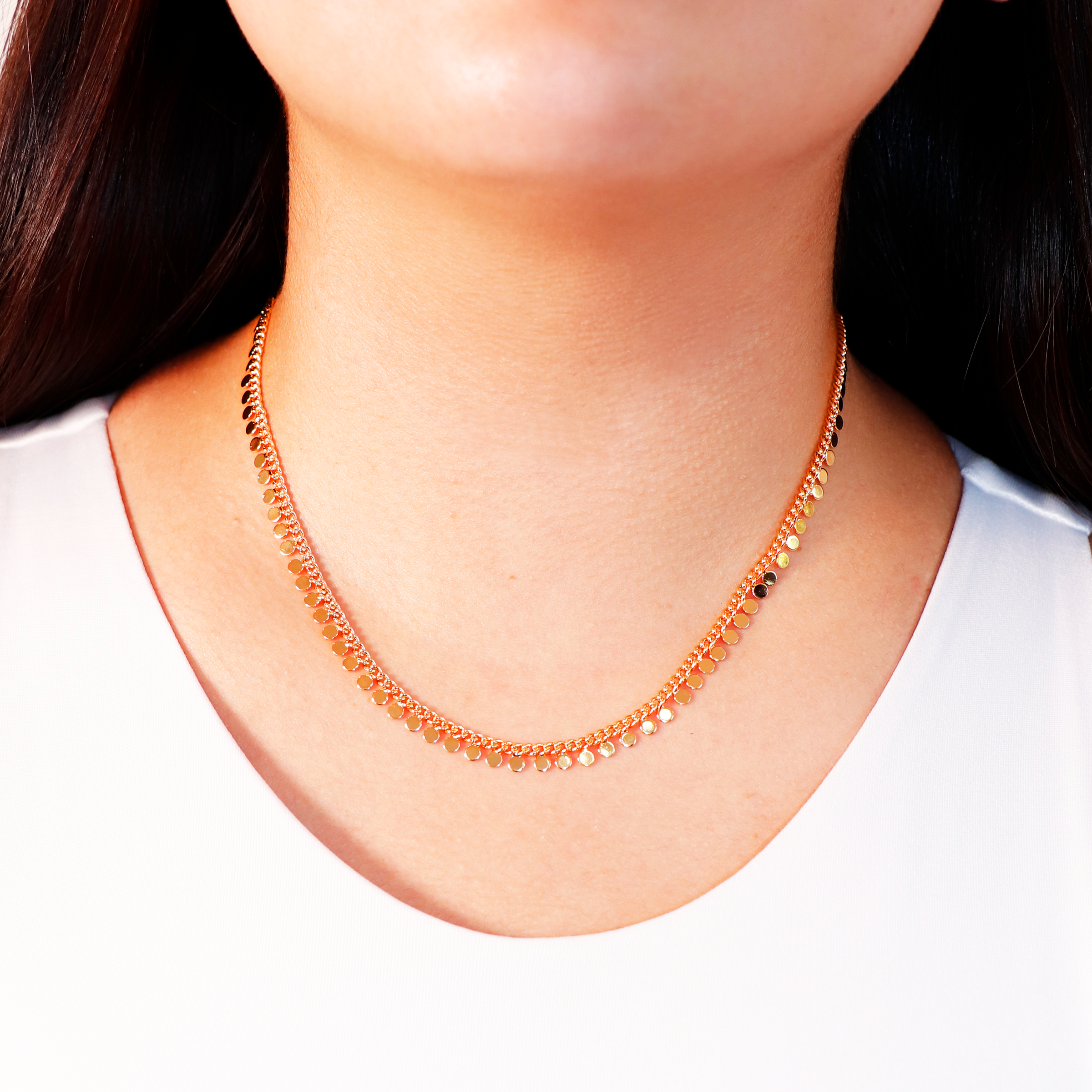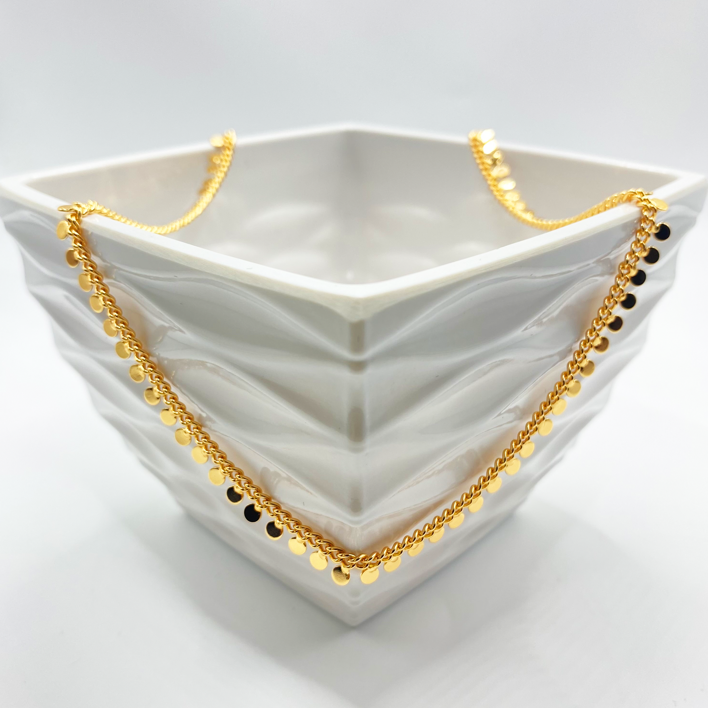 Gargantilla de 45 cm, bañada en oro de 18 kilates con diseño que simula pequeños pinos de boliche.