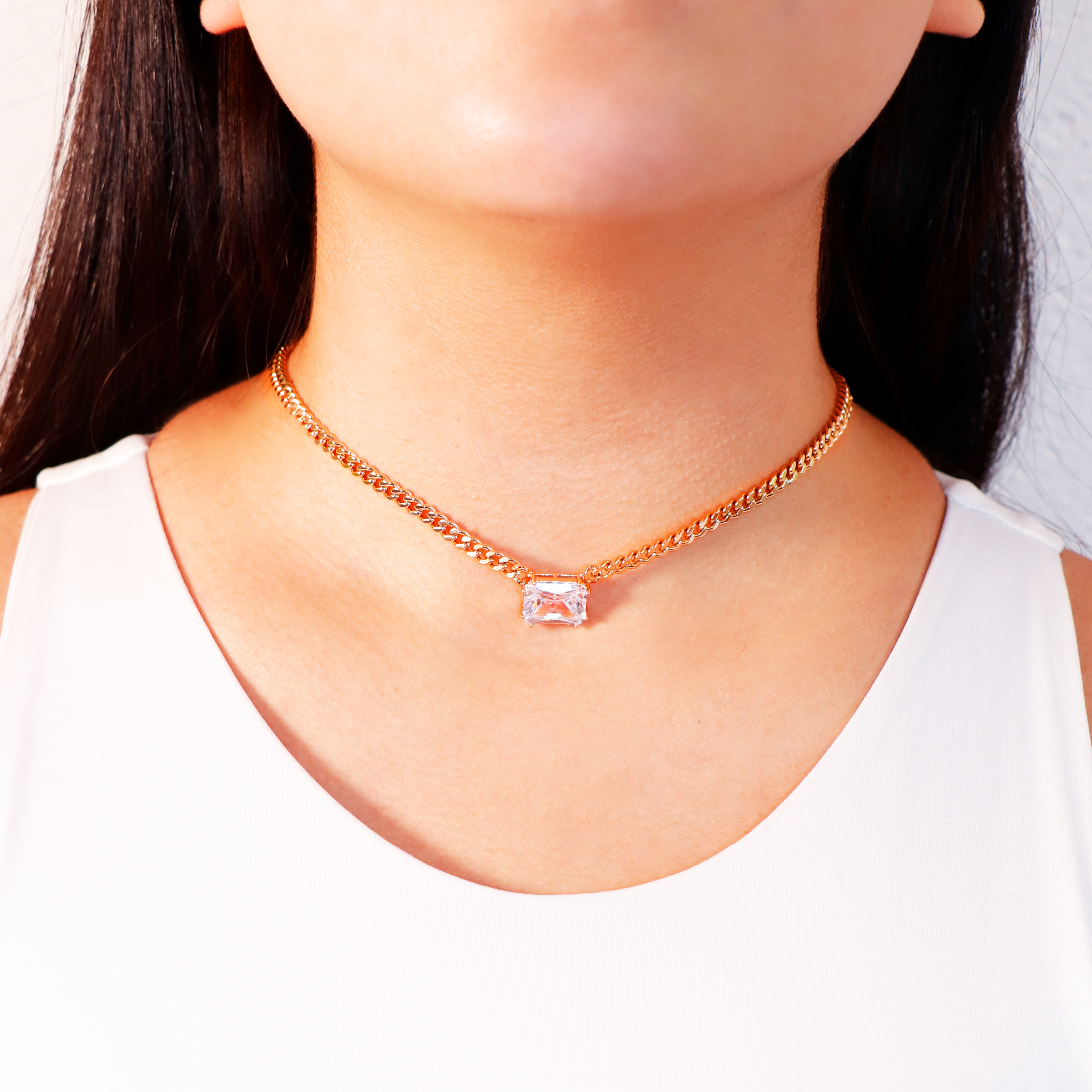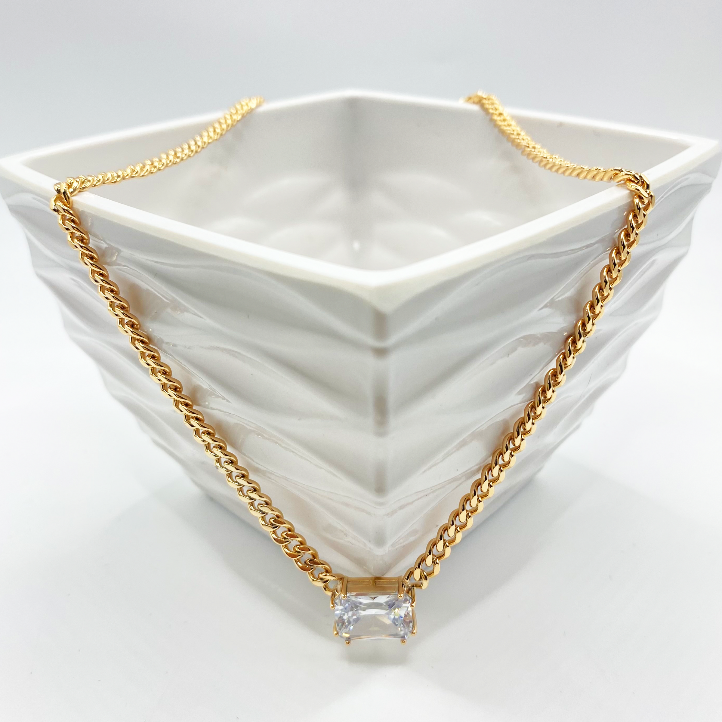 Gargantilla tejido barbado grueso de 40 cm con dije gigante de circonia.