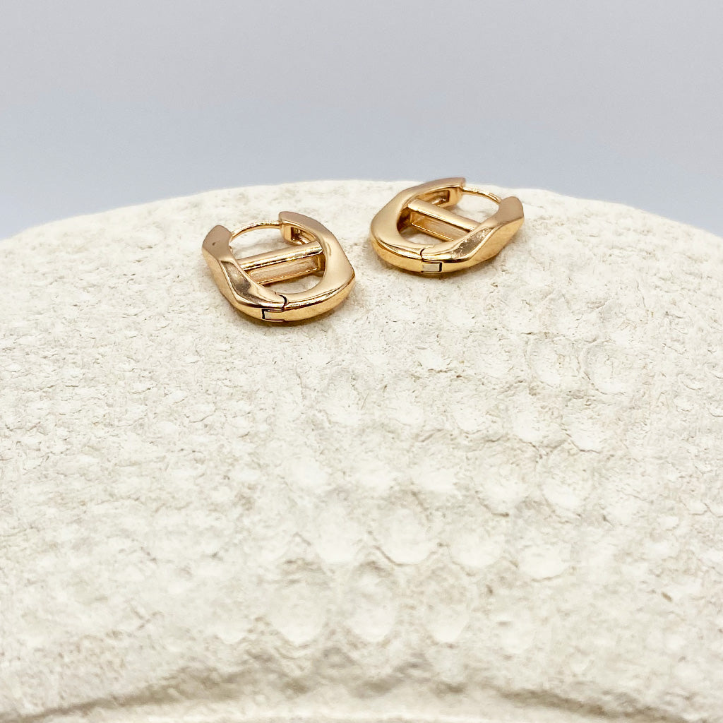 Huggie chapa de oro 18k con diseño de anillas de lata, 2 cm de largo.
