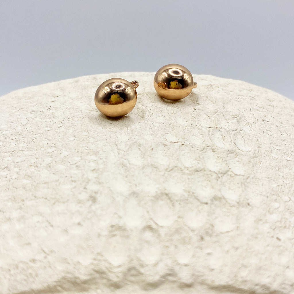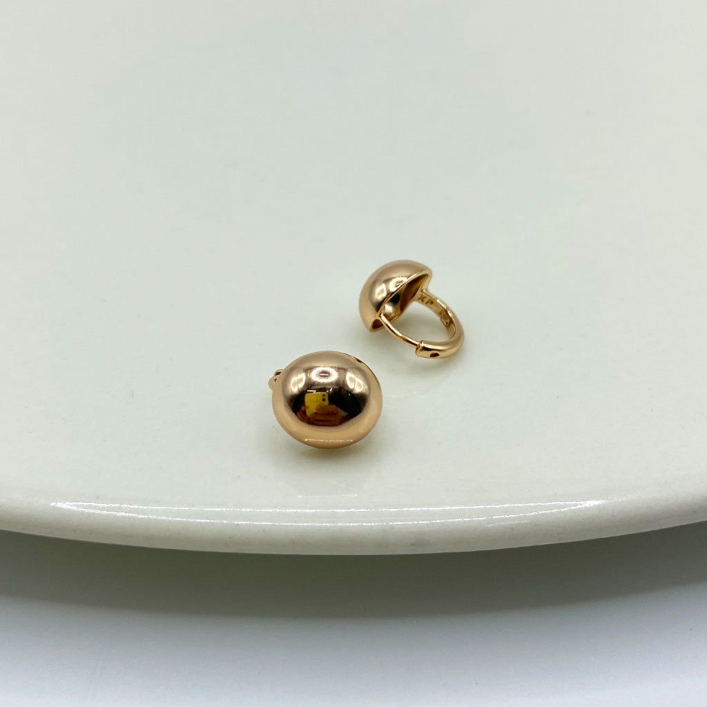 Huggie de chapa de oro 18k, totalmente lisa con diseño de esfera.