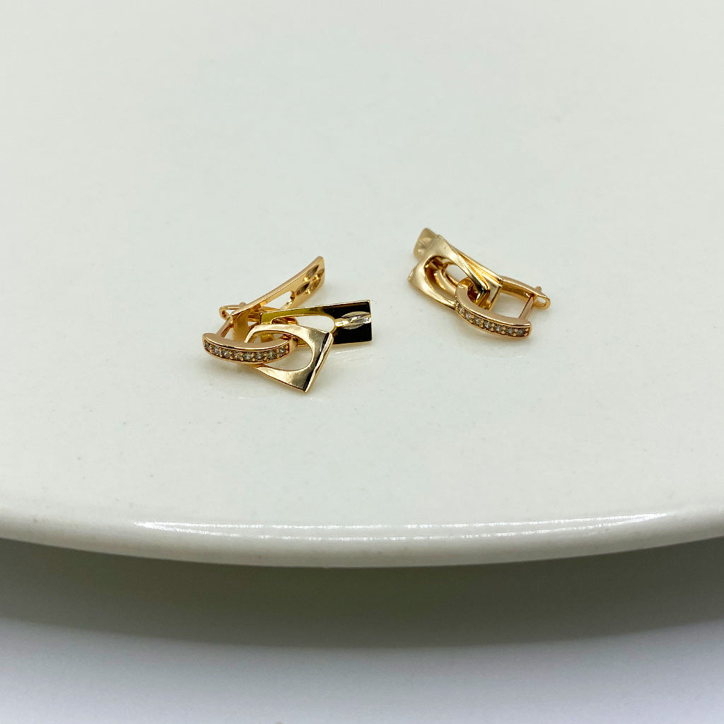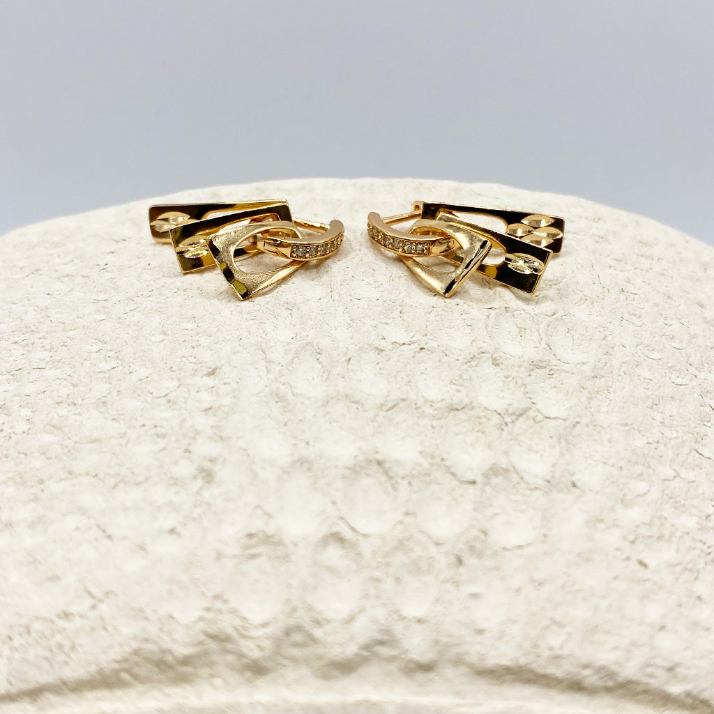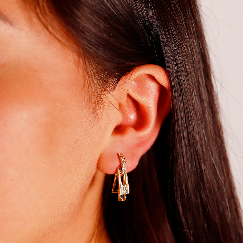 Arete con pendiente triple, chapado en oro 18k, 2 cm de largo.