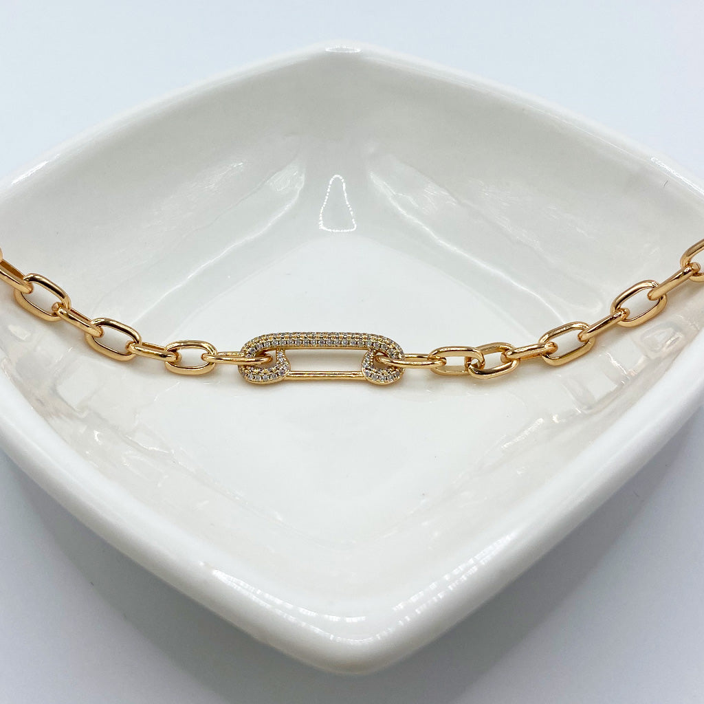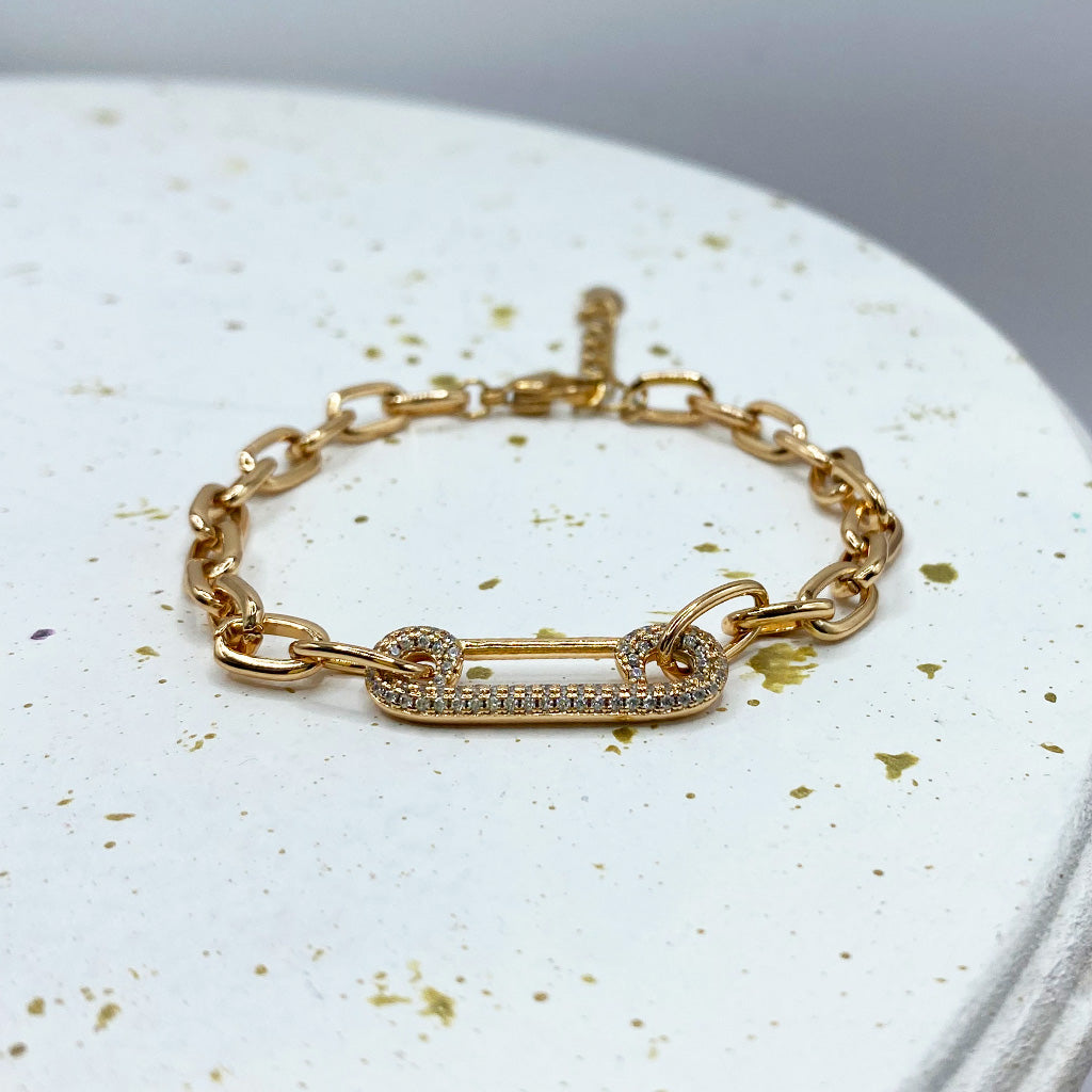 Pulsera de chapa de oro 18k, con diseño de clip y zirconias, 21 cm de largo.