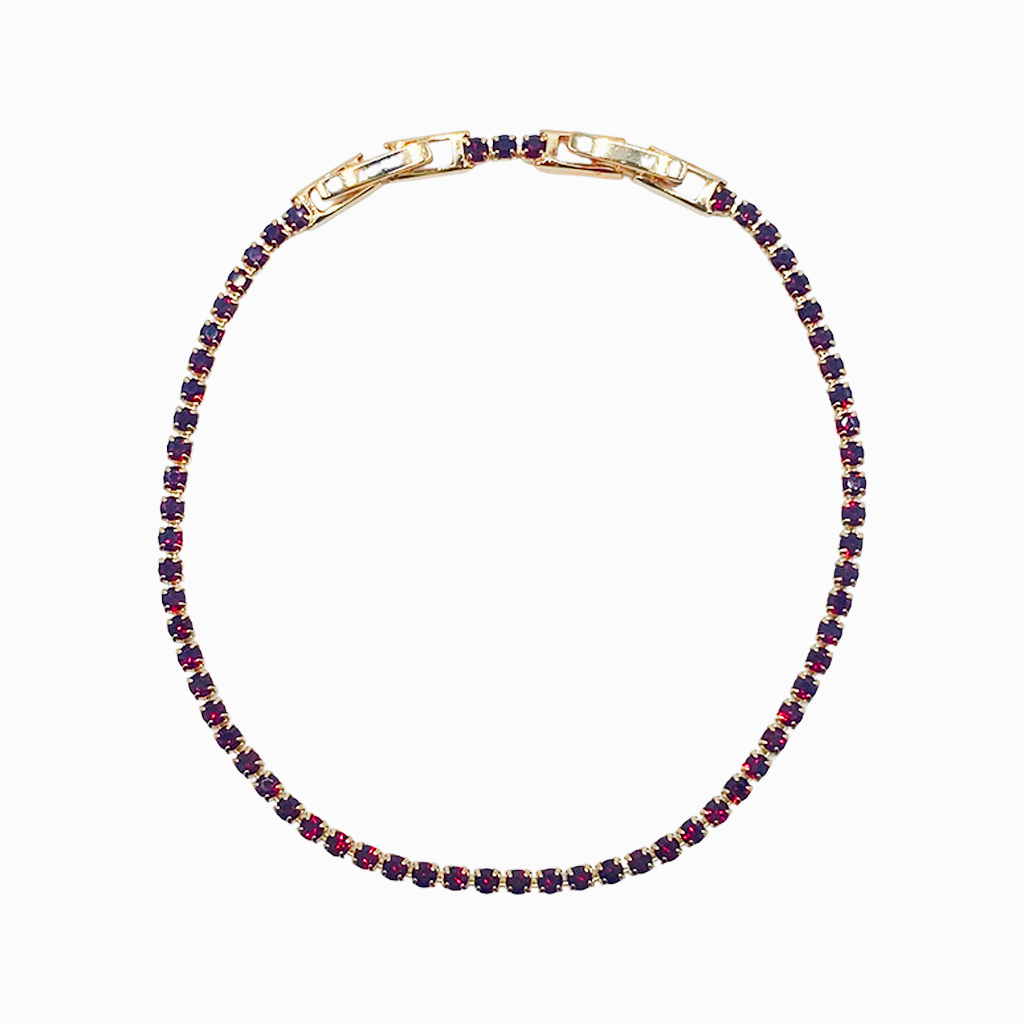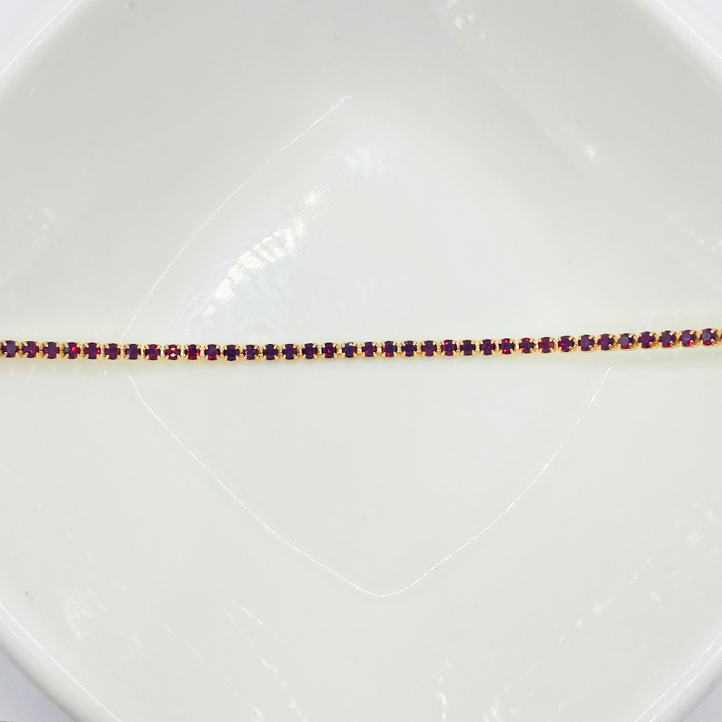 Elegante pulsera de baño de oro de 18 quilates con circonias rojas que imitan rubíes.